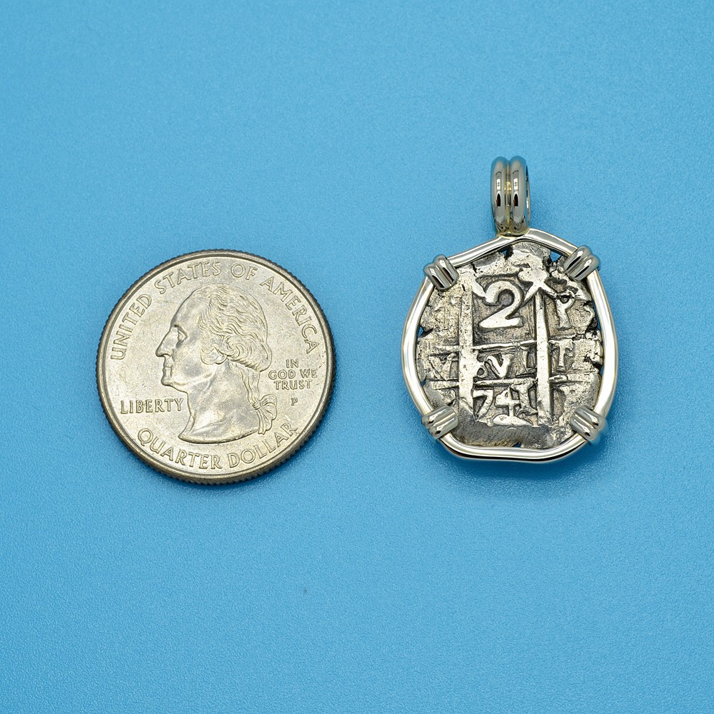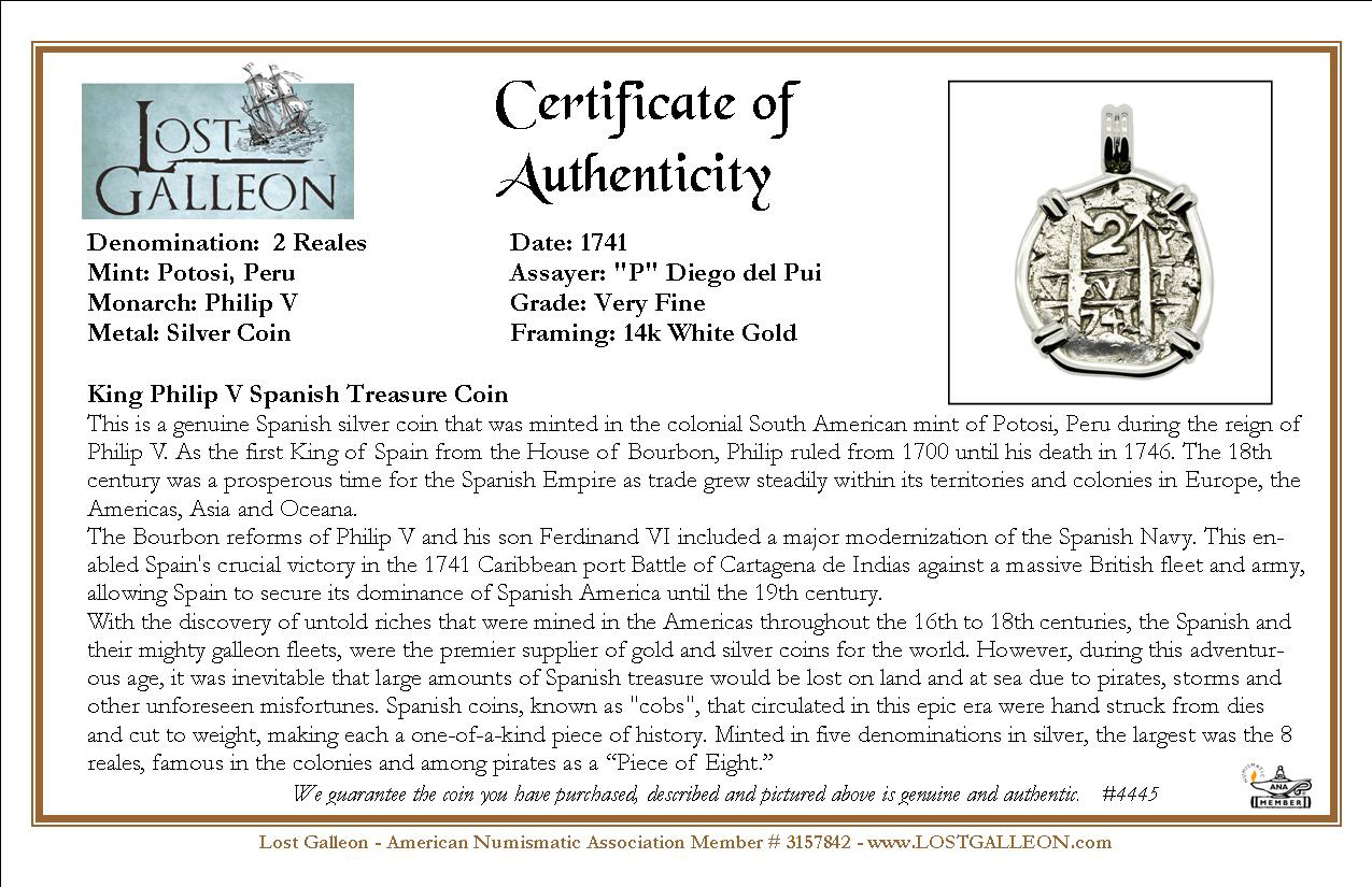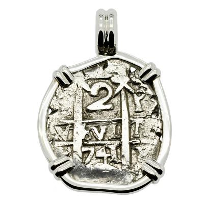 This is a genuine Spanish silver coin that was minted in the colonial South American mint of Potosi, Peru during the reign of Philip V. As the first King of Spain from the House of Bourbon, Philip ruled from 1700 until his death in 1746. The 18th century was a prosperous time for the Spanish Empire as trade grew steadily within its territories and colonies in Europe, the Americas, Asia and Oceana.
