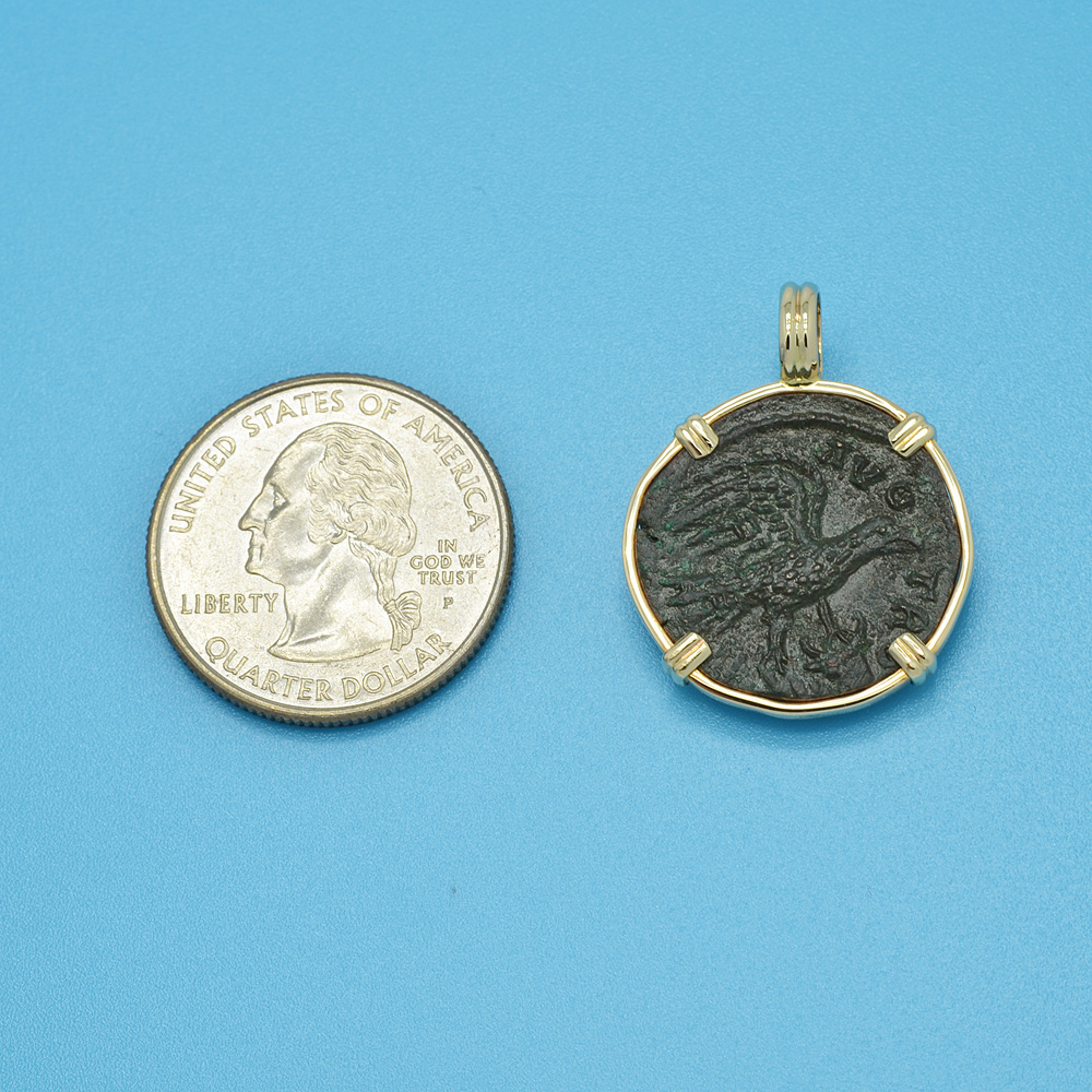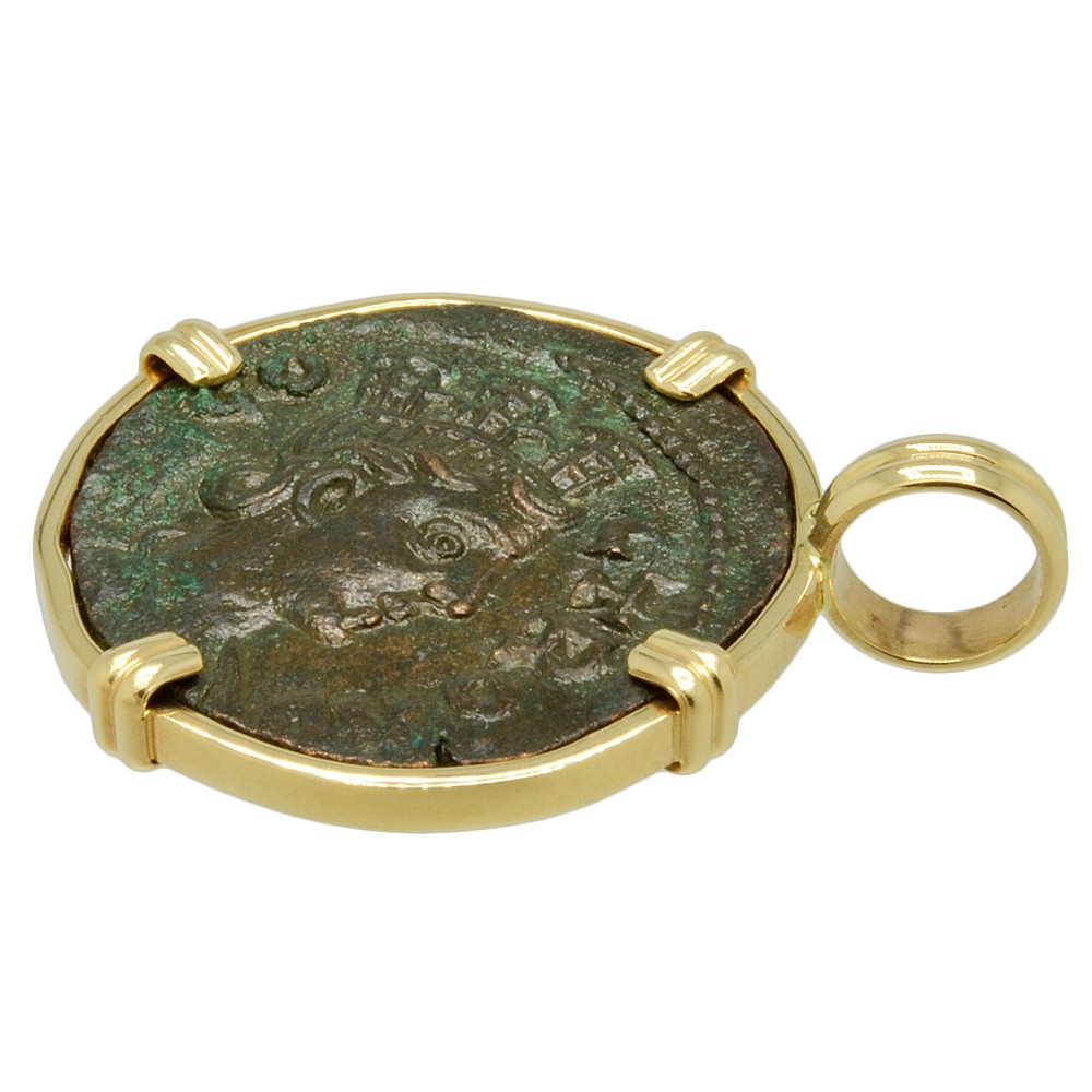 • Bronze Coin in 14k Gold Pendant, Weight 7.2g