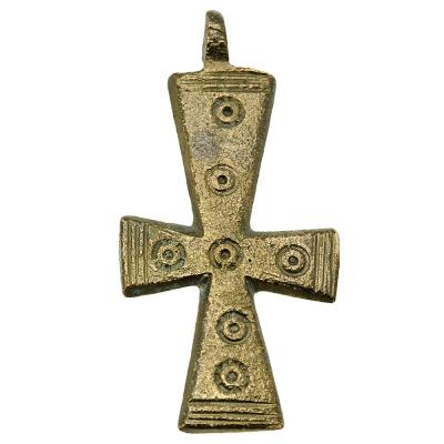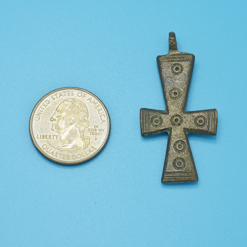 Over the centuries, the Byzantines, who still referred to themselves as Romans, fought to shield Europe from Muslim expansion and they also preserved much of the literary works and scientific knowledge of ancient Greece and Rome. The Empire was one of the most powerful economic, cultural and military forces in Europe and Asia Minor, existing for more than 1,000 years, until 1453. This one-of-a-kind bronze cross was surely worn by a Byzantine citizen as a statement of faith during this amazing age of early Christendom.