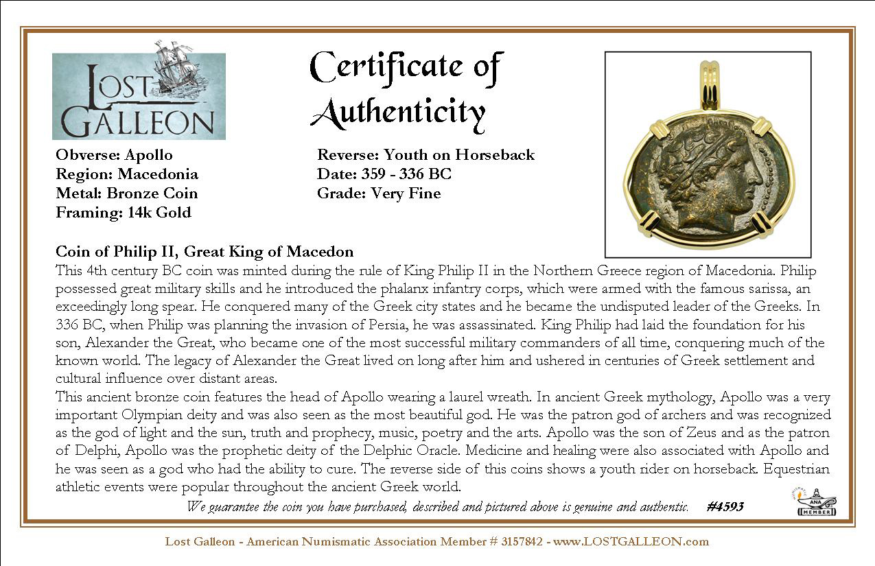 This 4th century BC coin was minted during the rule of King Philip II in the Northern Greece region of Macedonia. Philip possessed great military skills and he introduced the phalanx infantry corps, which were armed with the famous sarissa, an exceedingly long spear. He conquered many of the Greek city states and he became the undisputed leader of the Greeks. In 336 BC, when Philip was planning the invasion of Persia, he was assassinated. King Philip had laid the foundation for his son, Alexander the Great, who became one of the most successful military commanders of all time, conquering much of the known world. The legacy of Alexander the Great lived on long after him and ushered in centuries of Greek settlement and cultural influence over distant areas.