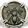 This bronze coin was minted in Ephesus, a city of great importance to the ancient Greeks and home to the famed Temple of Artemis, one of the Seven Wonders of the Ancient World. The obverse side of this ancient coin shows a bee. The Greeks believed the bee was the sacred insect that bridged the natural world to the afterlife. Beehives were used as tomb decorations and some tombs were even shaped as beehives.