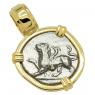 The Chimaera was a female mythical fire-breathing creature with the body of a goat, the head of a lion and a snake for a tail. Sighting the Chimaera was an omen of storms, shipwrecks and natural disasters, particularly volcanoes. The Chimaera was likely put on this coin because the dreaded monster was ultimately killed by the hero Bellerophon, Sikyon’s chief deity, with help from his flying steed Pegasus.
