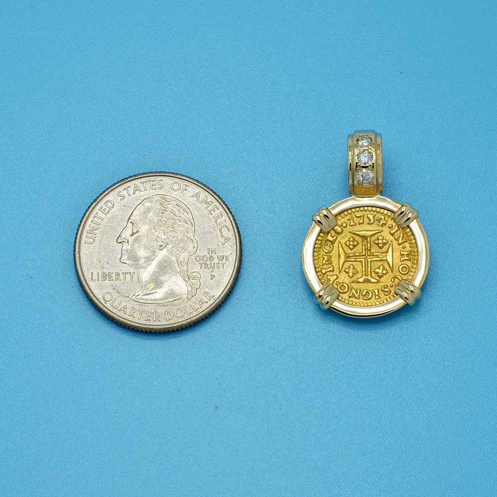 • Gold Coin in 14k Gold Pendant with .15ct Diamonds, Weight: 4.8g