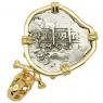This is a genuine Spanish silver coin that was minted in the colonial South American mint of Lima, Peru. In 1533, Spanish conquistador Francisco Pizarro conquered the Inca Empire in Peru and two years later, he established the coastal city of Lima. Soon after, high in the Andes Mountains at Potosi, the Spanish discovered the richest silver deposits in the world and in 1568 they opened the mint in Lima.