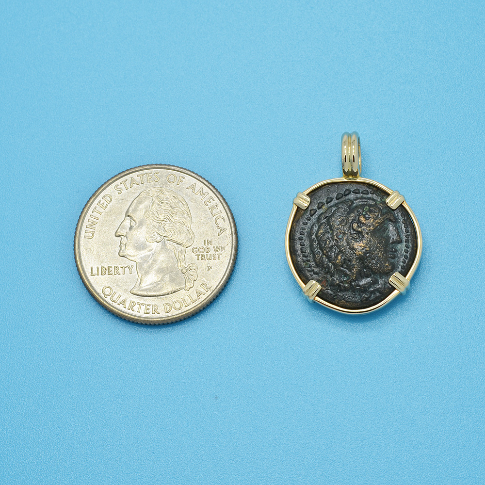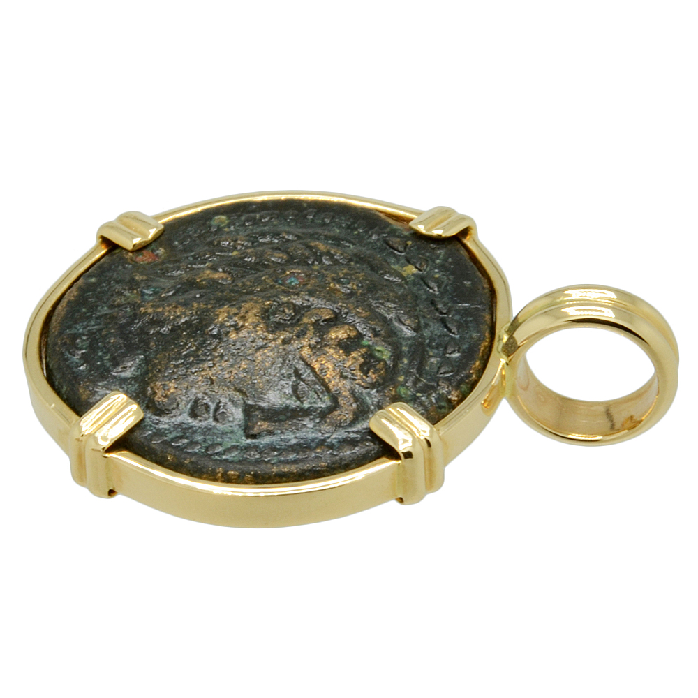 • Bronze Coin in 14k Gold Pendant, Weight 7.6g