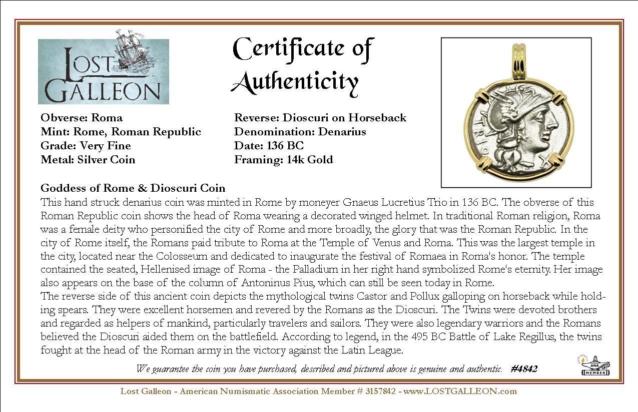 SOLD Roma and Dioscuri Denarius Pendant. Please Explore Our Roman Category For Similar Items.
