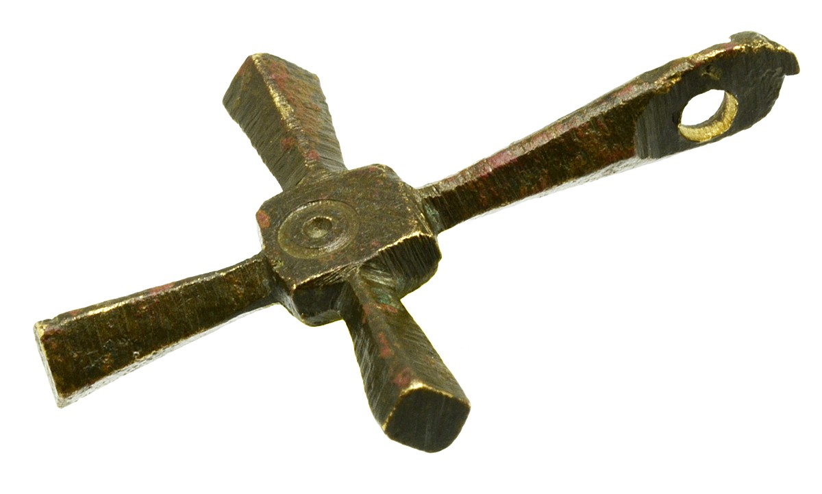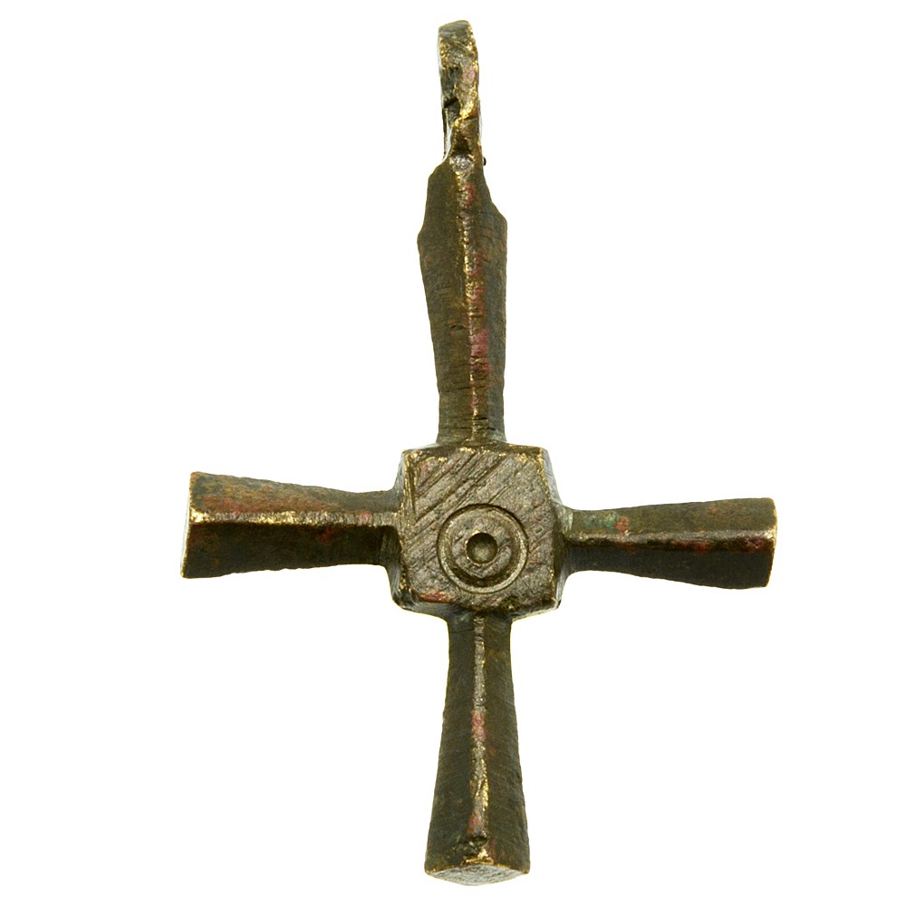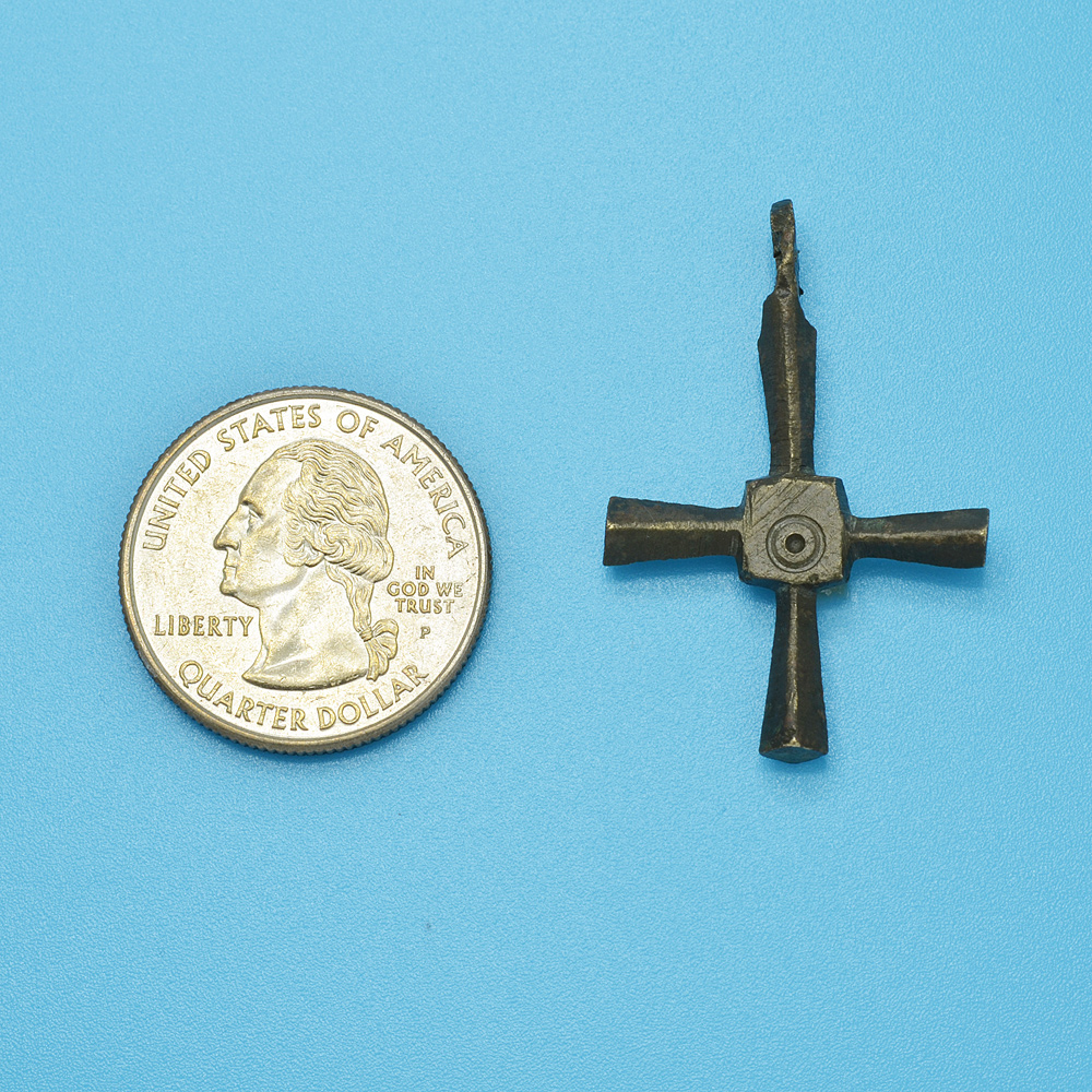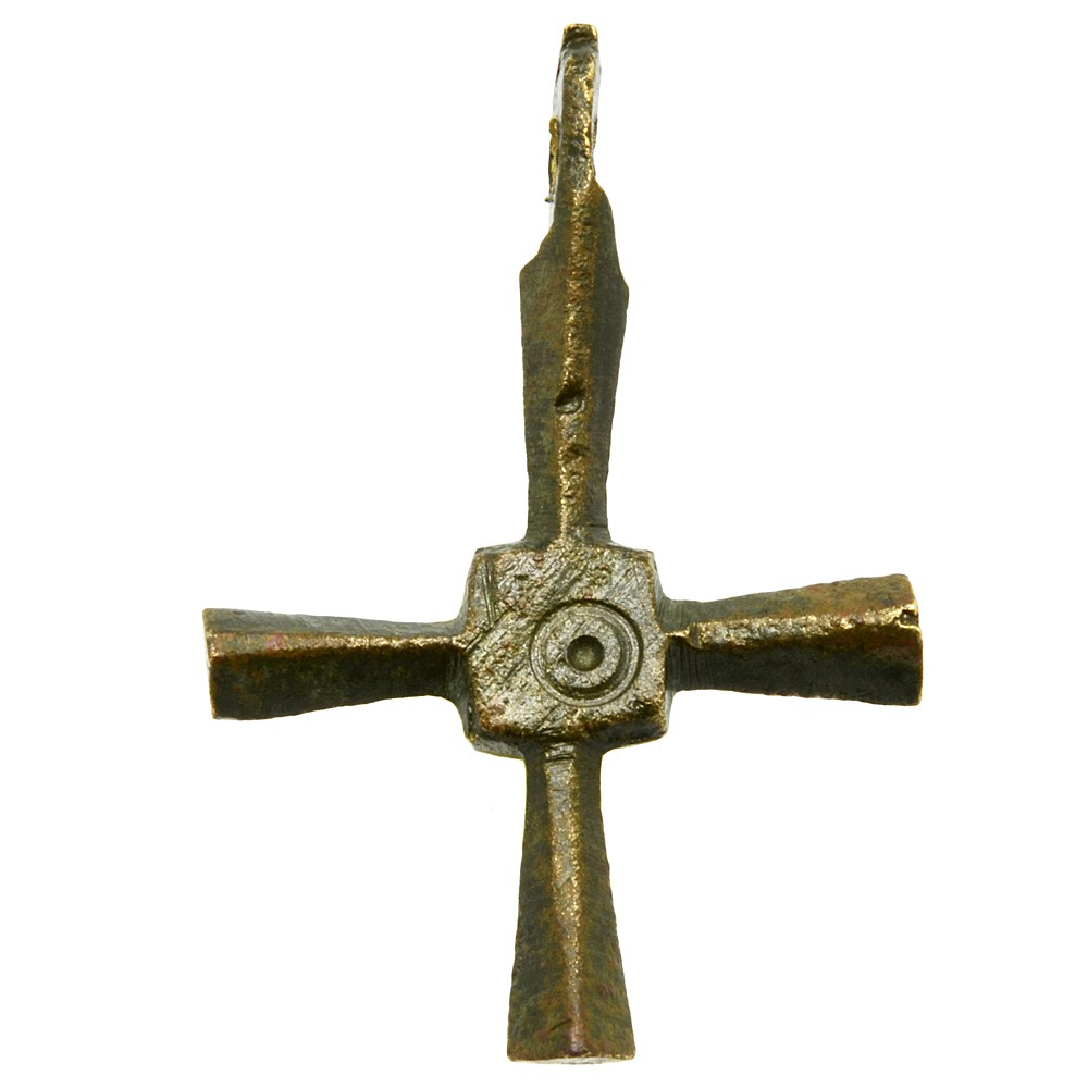 Over the centuries, the Byzantines, who still referred to themselves as Romans, fought to shield Europe from Muslim expansion and they also preserved much of the literary works and scientific knowledge of ancient Greece and Rome. The Empire was one of the most powerful economic, cultural and military forces in Europe and Asia Minor, existing for more than 1,000 years, until 1453. This one-of-a-kind bronze cross was surely worn by a Byzantine citizen as a statement of faith during this amazing age of early Christendom.