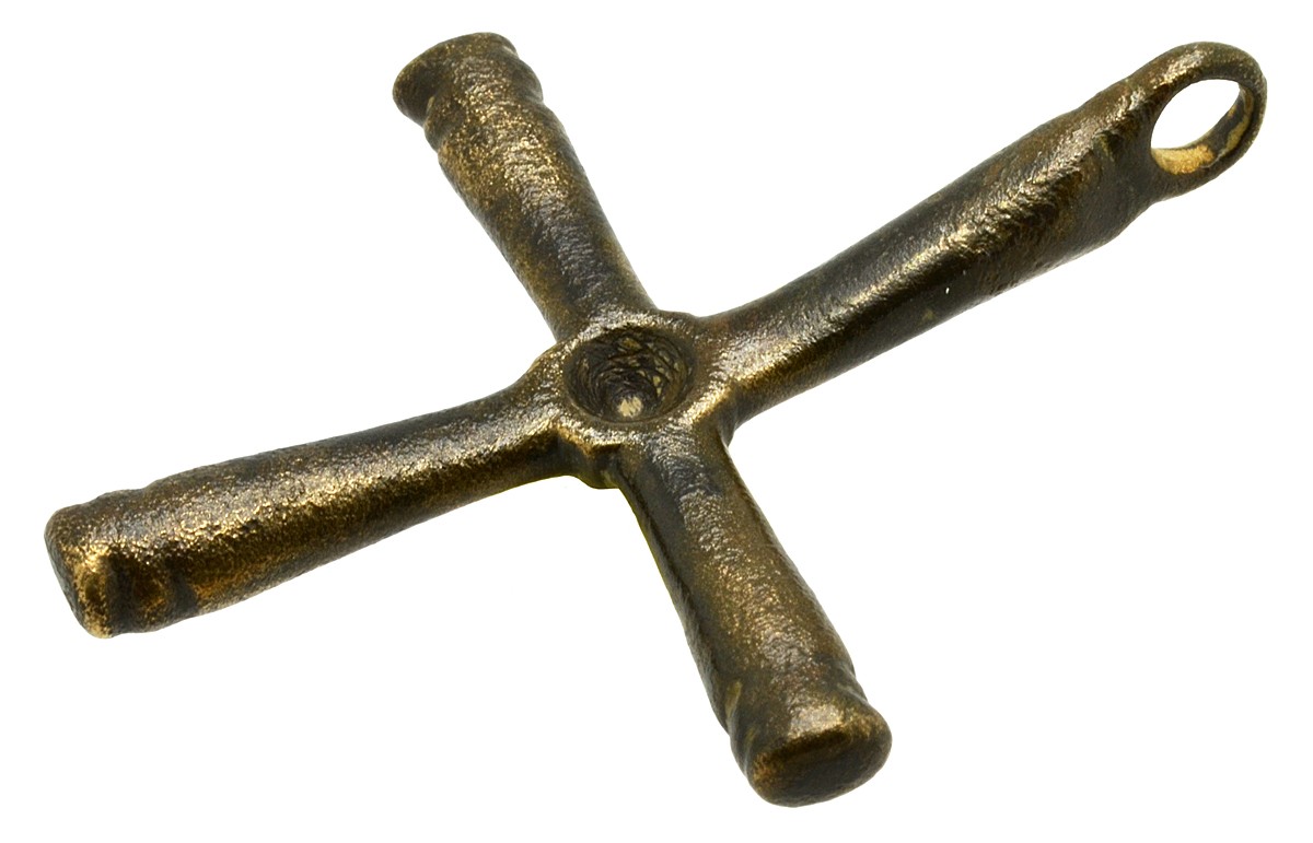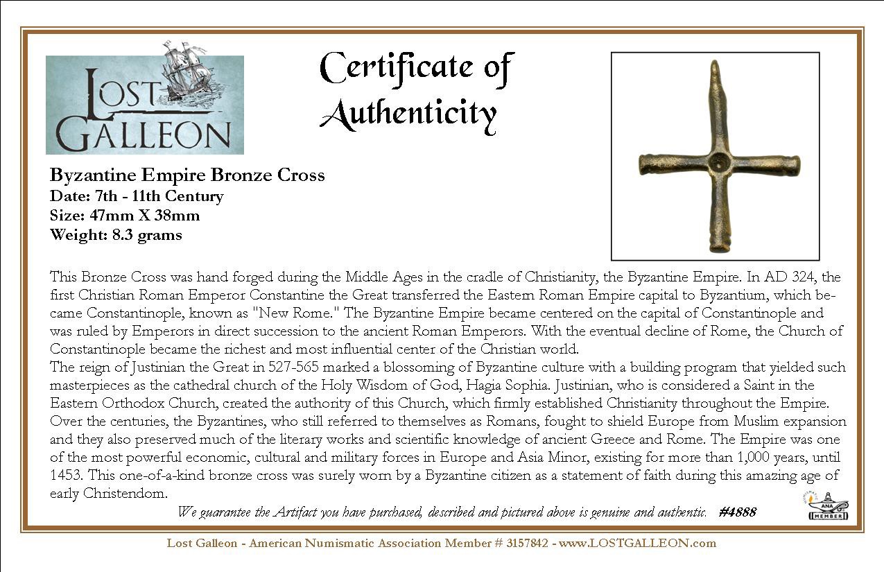 Over the centuries, the Byzantines, who still referred to themselves as Romans, fought to shield Europe from Muslim expansion and they also preserved much of the literary works and scientific knowledge of ancient Greece and Rome. The Empire was one of the most powerful economic, cultural and military forces in Europe and Asia Minor, existing for more than 1,000 years, until 1453. This one-of-a-kind bronze cross was surely worn by a Byzantine citizen as a statement of faith during this amazing age of early Christendom.
