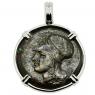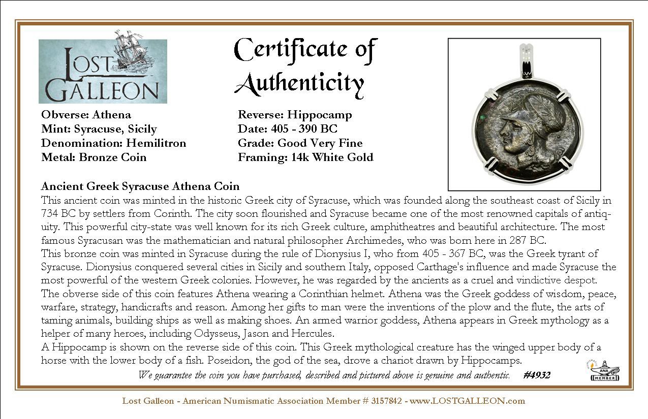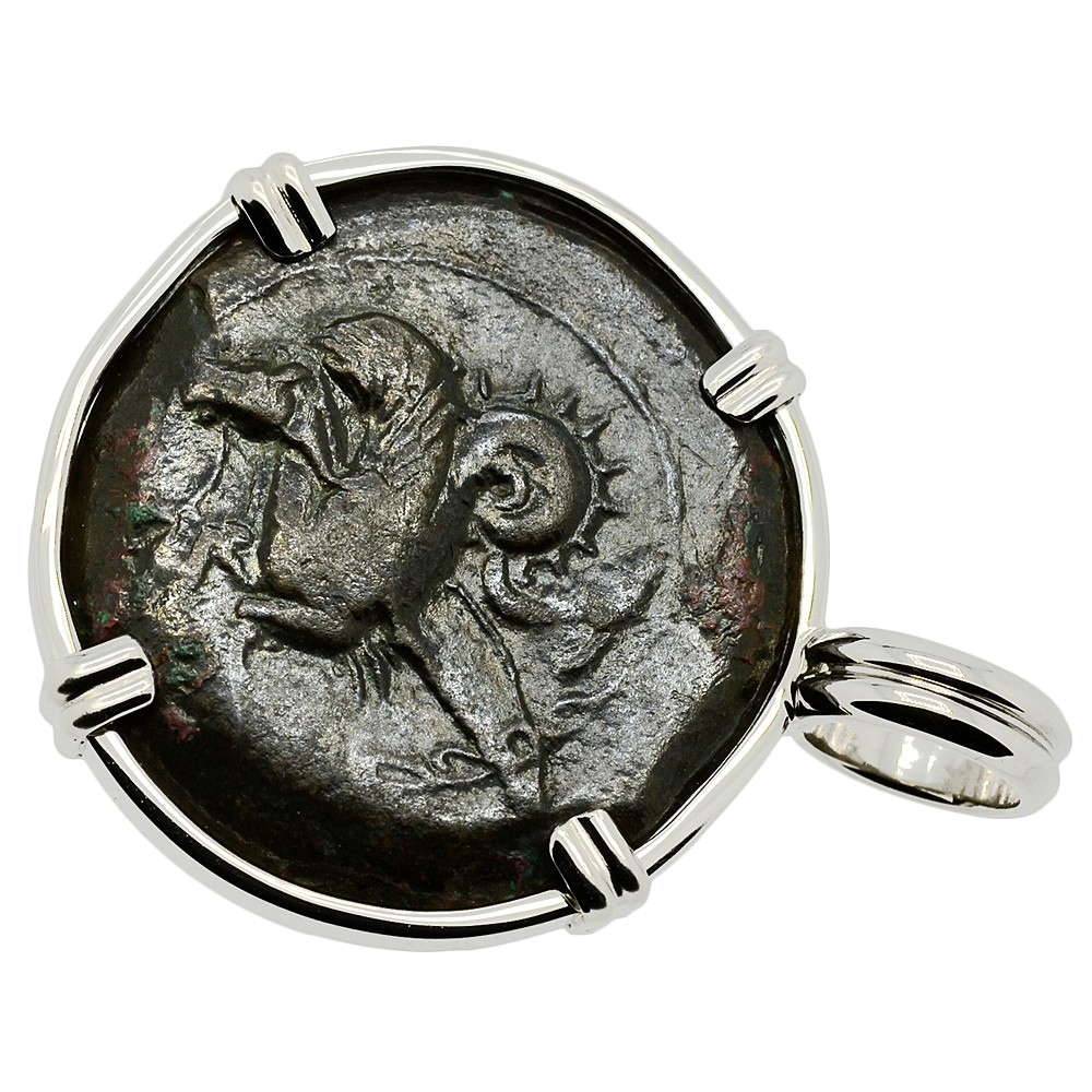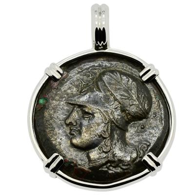 This bronze coin was minted in Syracuse during the rule of Dionysius I, who from 405 - 367 BC, was the Greek tyrant of Syracuse. Dionysius conquered several cities in Sicily and southern Italy, opposed Carthage's influence and made Syracuse the most powerful of the western Greek colonies. However, he was regarded by the ancients as a cruel and vindictive despot.
