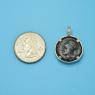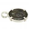 A Hippocamp is shown on the reverse side of this coin. This Greek mythological creature has the winged upper body of a horse with the lower body of a fish. Poseidon, the god of the sea, drove a chariot drawn by Hippocamps.