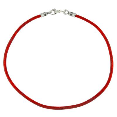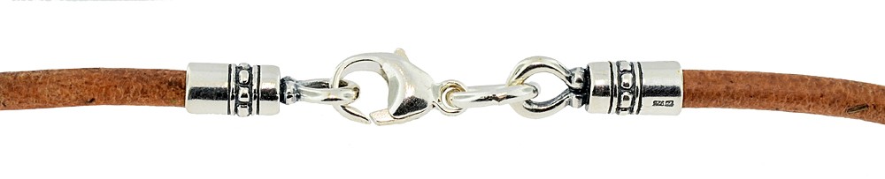 Cut from the center of the hide and naturally dyed to retain its softness, our round leather cord is the finest in quality. This 3mm Leather Cord is a great complement to our medium to larger sized Treasure Pendants. These custom leather necklaces come in 4 colors: Natural Tan, Red, Brown or Black with sterling silver end caps and clasp.