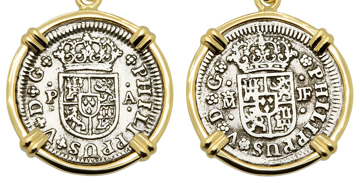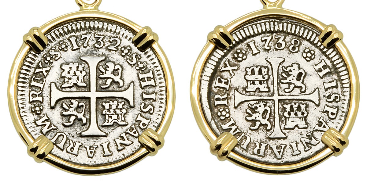 With the discovery of untold riches that were mined in the Americas throughout the 16th to 18th centuries, the Spanish and their mighty galleon fleets were the premier supplier of gold and silver coins for the world. However, during this adventurous age, it was inevitable that large amounts of Spanish treasure would be lost on land and at sea due to pirates, storms and other unforeseen misfortunes. Spanish coinage of this historical period was minted in five denominations in silver, the largest was the 8 reales, famous in the colonies as a “Piece of Eight.” The other denominations were 4 reales, 2 reales, 1 real and 1/2 real.