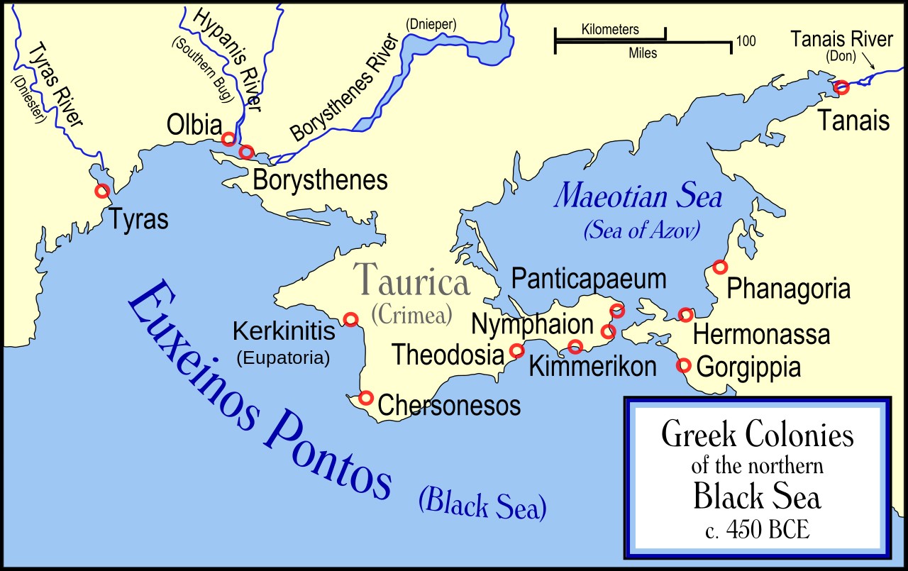This ancient coin was minted in Panticapaeum, a Greek city located on the present-day eastern shore of Crimea, which the Greeks called Taurica. The city was founded by Milesians in the 7th century BC and grew to be wealthy as a trade center and producer of grain, pottery and metalworking. Panticapaeum had a fortified acropolis and many monumental buildings, including temples to Apollo, Artemis, and Zeus. The city began minting silver coins in the 5th century BC and gold and bronze coins in the 4th century BC. During this period, the city became the residence of the dynasties of Thracian Kings of Bosporus.