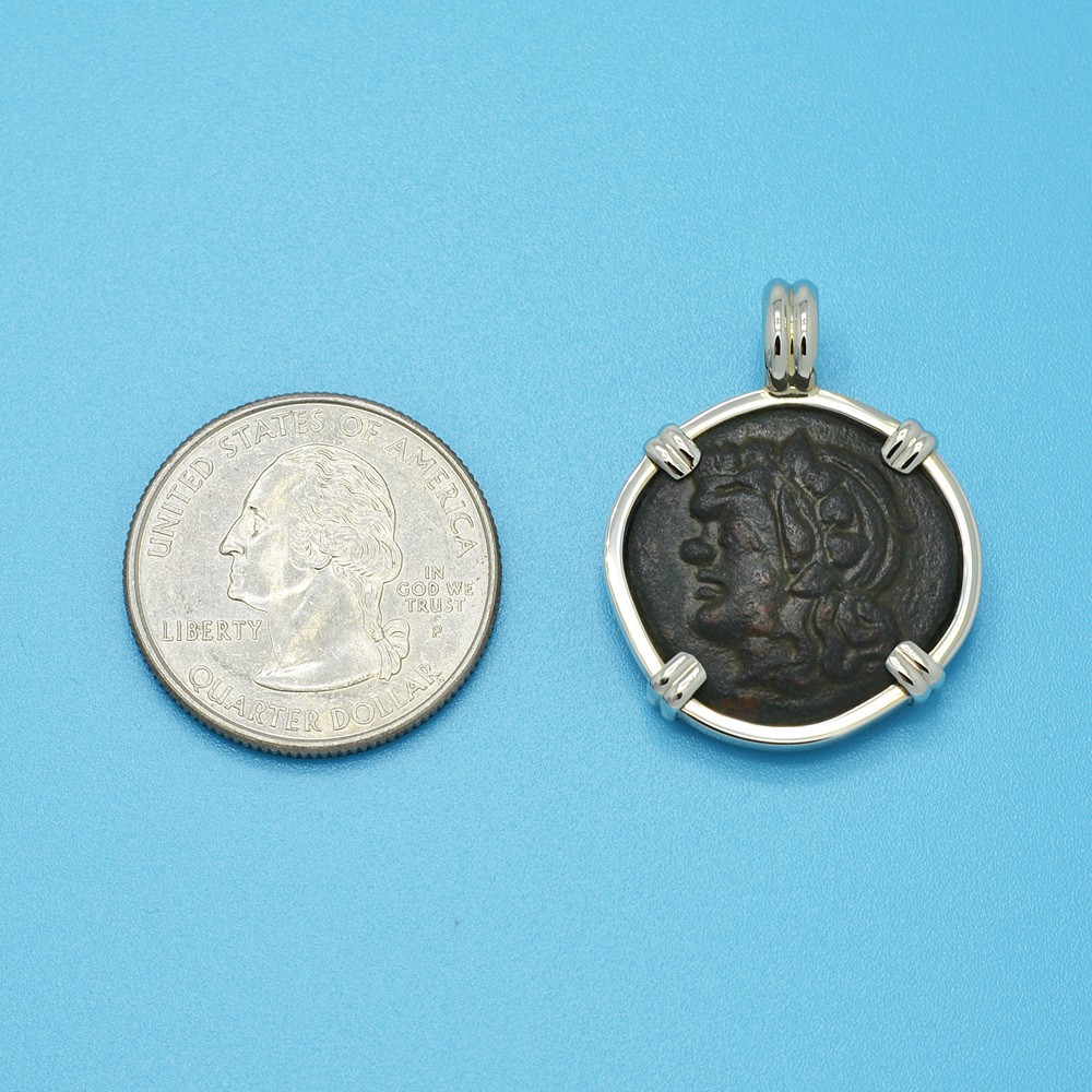 • Bronze Coin in 14k White Gold Pendant, Weight 12.9g