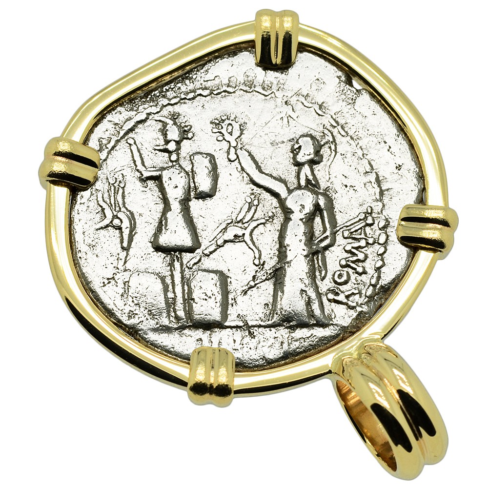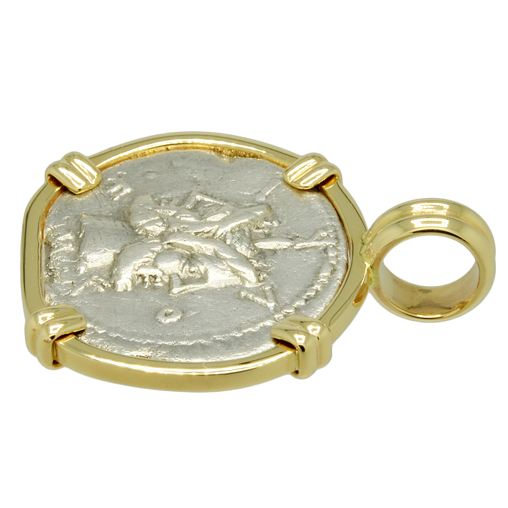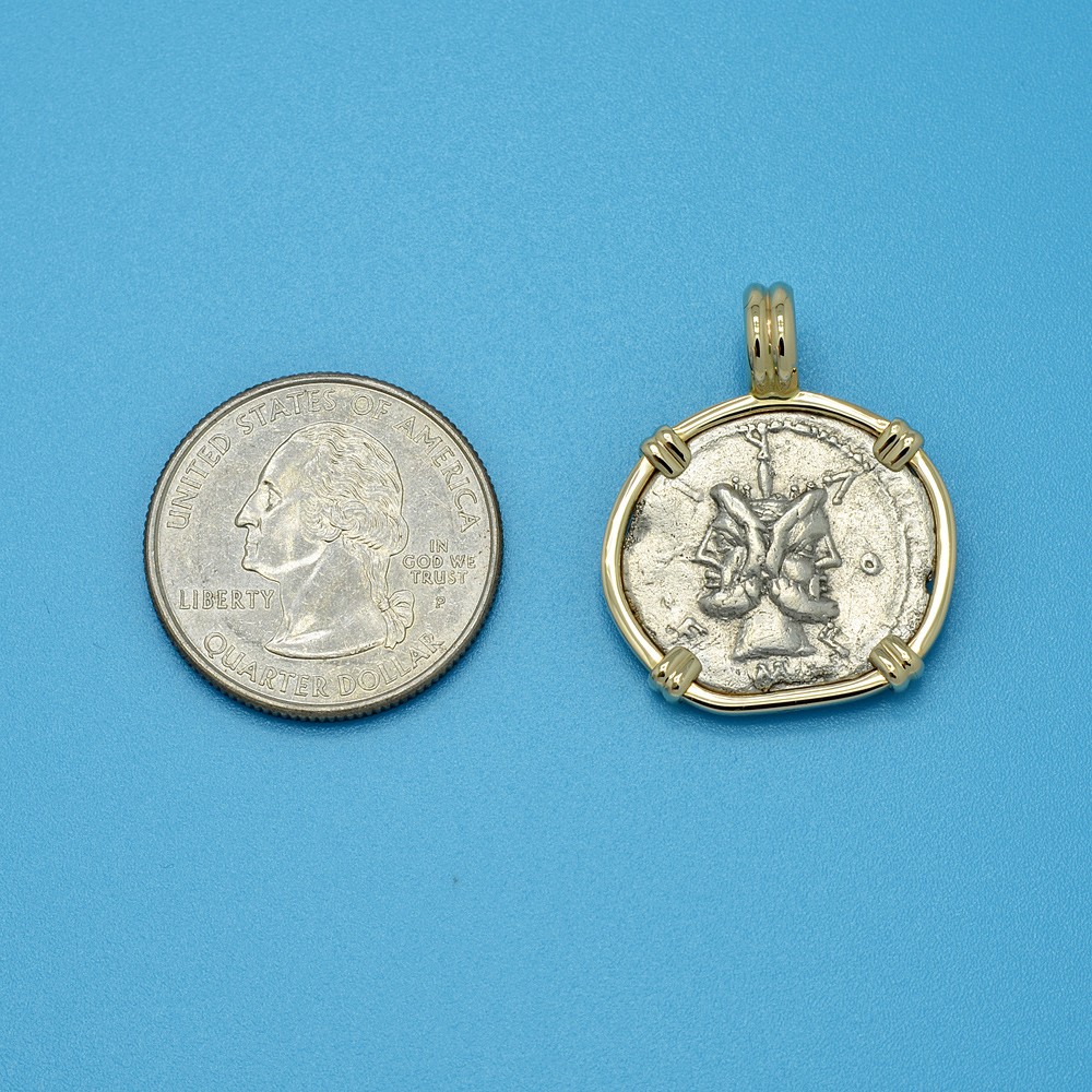 • Silver Denarius Coin in 14k Gold Pendant, Weight 6.6g