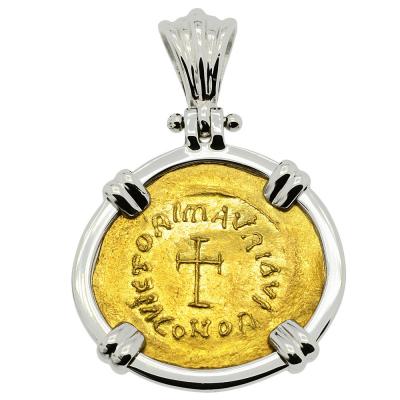Over the following centuries, the Eastern Romans helped to shield Europe from Muslim expansion and provided a stable gold currency for the region. The obverse of this gold tremissis coin shows a cross potent and the reverse depicts the pearl-diademed, draped and cuirassed bust of Emperor Maurice Tiberius. The tremissis was a currency of late ancient Rome and it continued to be minted by the Eastern Romans until the 8th century. Equal to one-third weight of the solidus coin, the tremissis coins were minted in 1.5 grams of near pure gold.