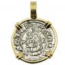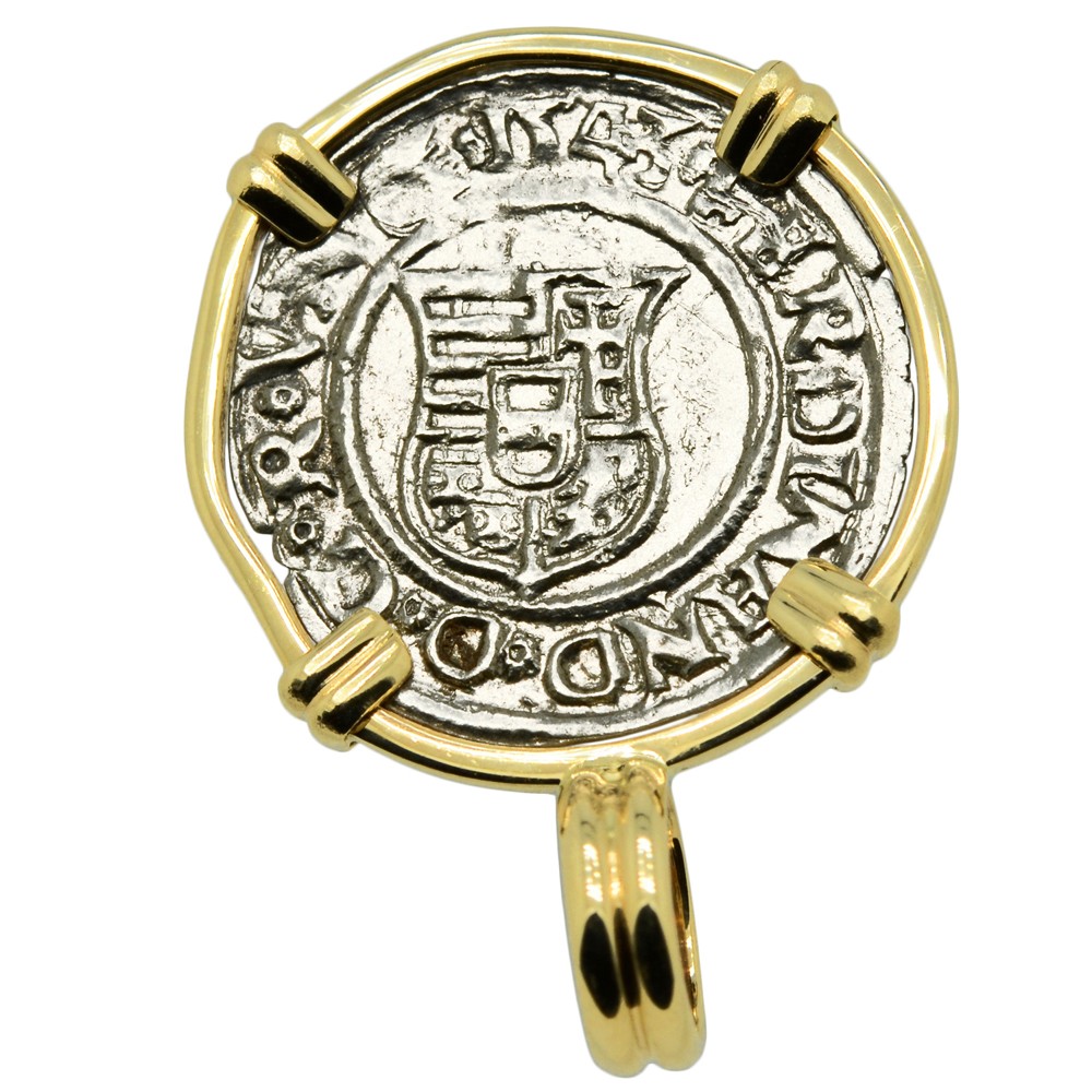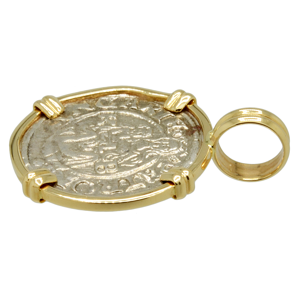 Hand struck in the 16th century, during the early European Renaissance, this denar coin circulated in the Kingdom of Hungary. A centuries-old silver relic, it was hand made by Magyar craftsmen under the authority of one of several reigning monarchs. The reverse side of this coin shows the royal coat of arms and date.