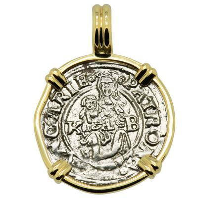 Although constantly at war with the Muslim Ottoman Empire, Hungary was prosperous and maintained good silver coinage throughout this period. These are the first coins of Hungary to portray the Madonna and Child image, the combination of which would later become a signature type for that country. The change was perhaps a sign of piety, or a combination of faith and defiance of the Ottoman Turks.