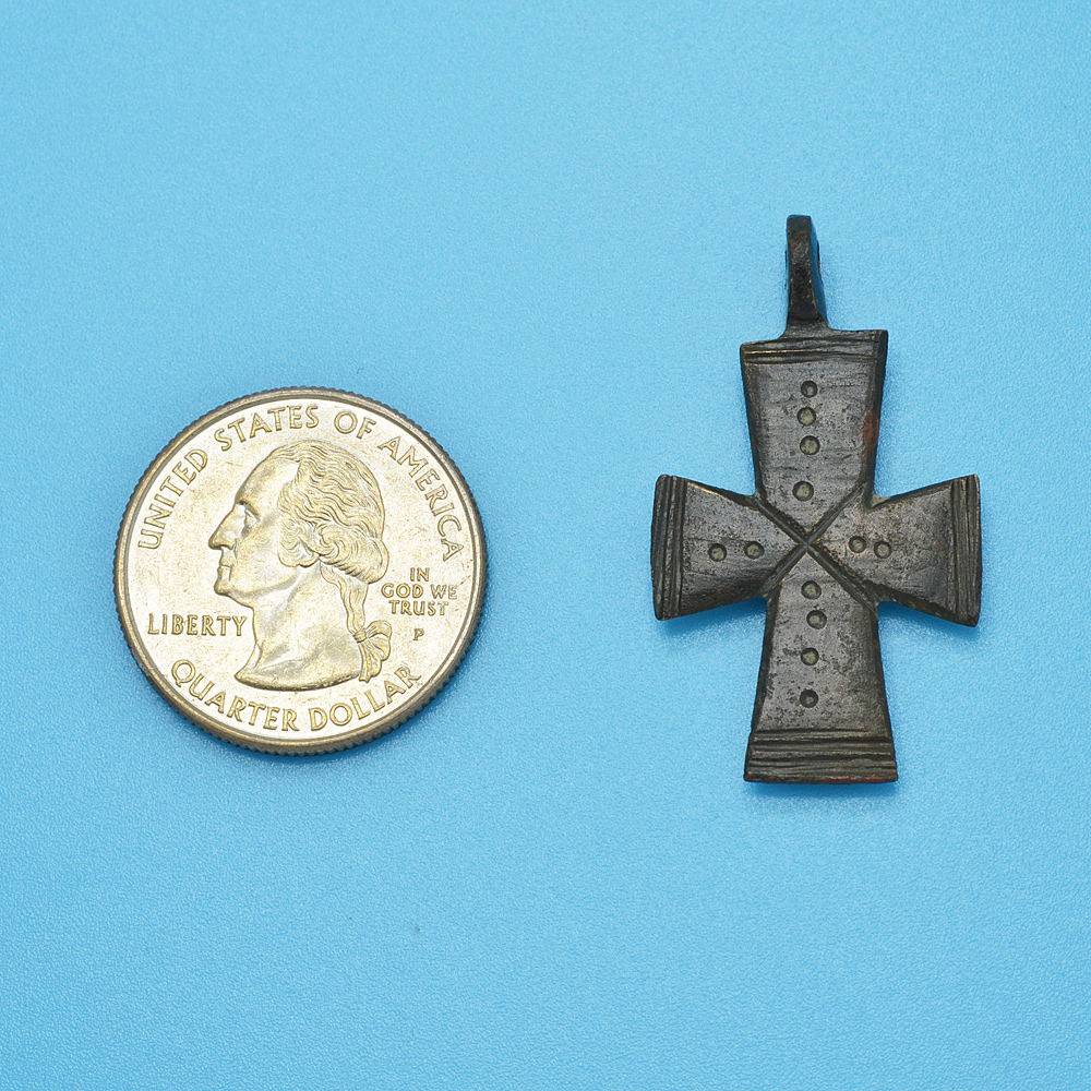 Over the centuries, the Byzantines, who still referred to themselves as Romans, fought to shield Europe from Muslim expansion and they also preserved much of the literary works and scientific knowledge of ancient Greece and Rome. The Empire was one of the most powerful economic, cultural and military forces in Europe and Asia Minor, existing for more than 1,000 years, until 1453. This one-of-a-kind bronze cross was surely worn by an Eastern Roman citizen as a statement of faith during this amazing age of early Christendom.