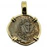 • Bronze Prutah Coin in 14k Gold Pendant, Weight 3.4g