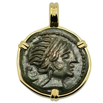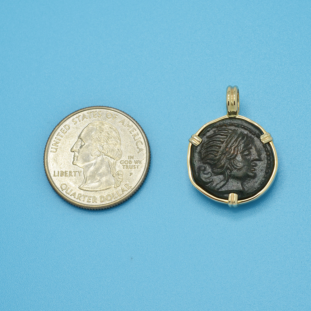 • Bronze Coin in 14k Gold Pendant, Weight 8.7g