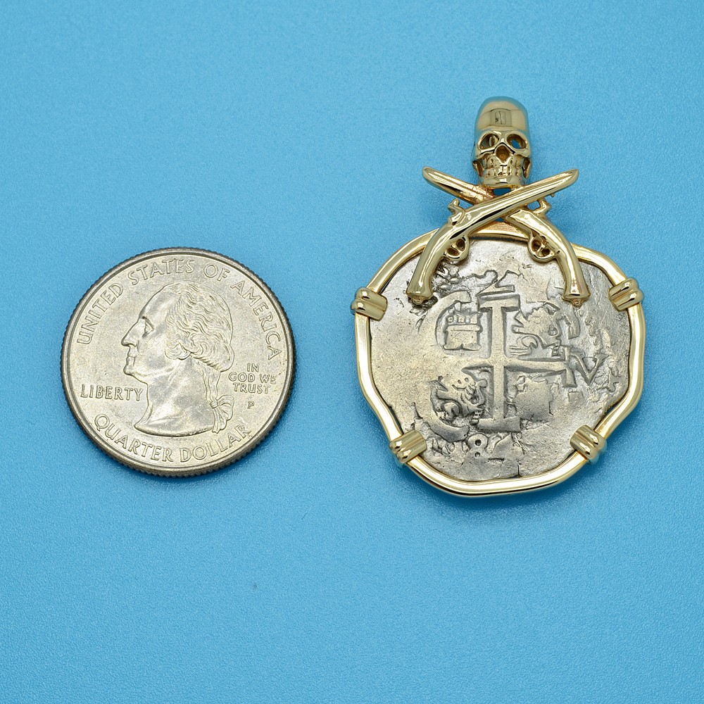 This is a genuine Spanish silver coin that was minted in the colonial South American mint of Potosi, Peru. In 1533, four decades after Columbus landed in the New World, Spanish conquistador Francisco Pizarro conquered the Inca Empire in Peru. Soon after, high in the Andes Mountains at Potosi, the Spanish discovered the richest silver deposits in the world and in 1575 they opened the mint in Potosi.