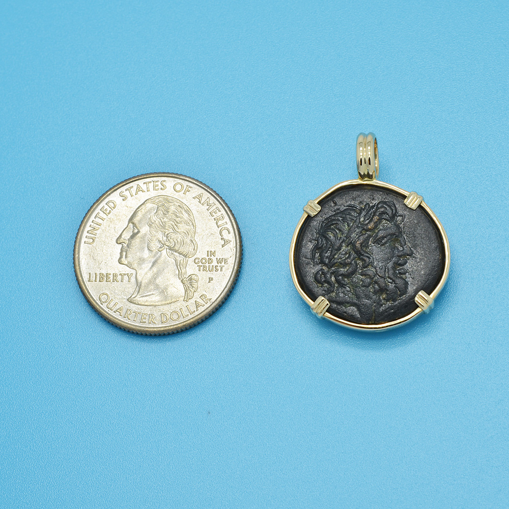 • Bronze Coin in 14k Gold Pendant, Weight 10.7g