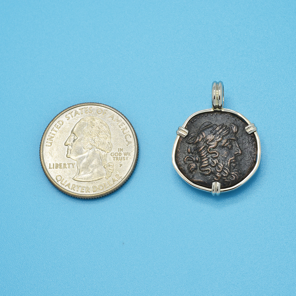 • Bronze Coin in 14k White Gold Pendant, Weight 9.6g