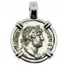 This denarius coin was minted in Rome during the rule of Hadrian, who was Roman Emperor from 117 to 138. The obverse side features the laureate head of Hadrian with the legend HADRIANVS AVGVSTVS “Hadrian Augustus.” Hadrian is best known for building Hadrian's Wall, which marked the northern limit of Roman territory in Britain. A significant portion of the wall still exists and today is the most popular tourist attraction in Northern England. In Rome, he re-built the Pantheon and almost two thousand years later, its dome is still the world's largest unreinforced concrete dome.