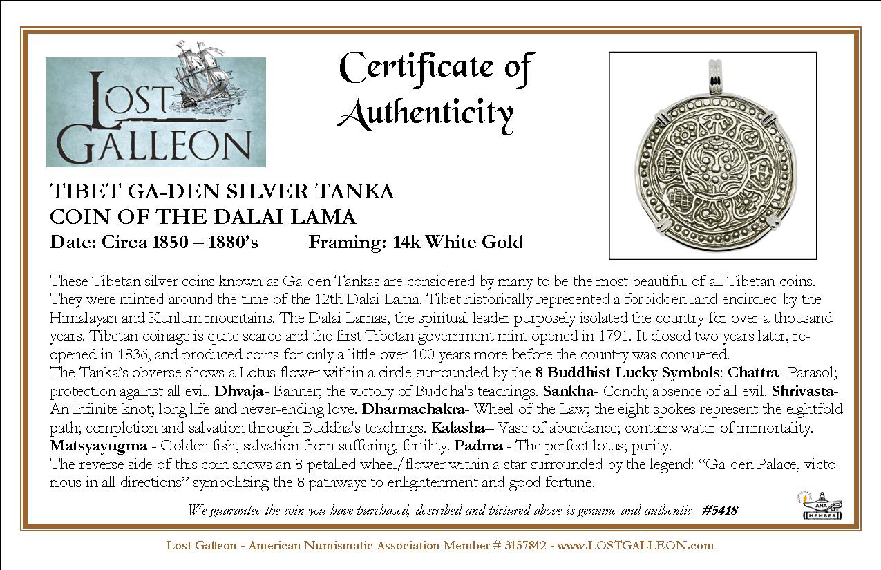 These Tibetan silver coins known as Ga-den Tankas are considered by many to be the most beautiful of all Tibetan coins. They were minted around the time of the 12th Dalai Lama. Tibet historically represented a forbidden land encircled by the Himalayan and Kunlum mountains. The Dalai Lamas, the spiritual leader purposely isolated the country for over a thousand years. Tibetan coinage is quite scarce and the first Tibetan government mint opened in 1791. It closed two years later, re-opened in 1836, and produced coins for only a little over 100 years more before the country was conquered.