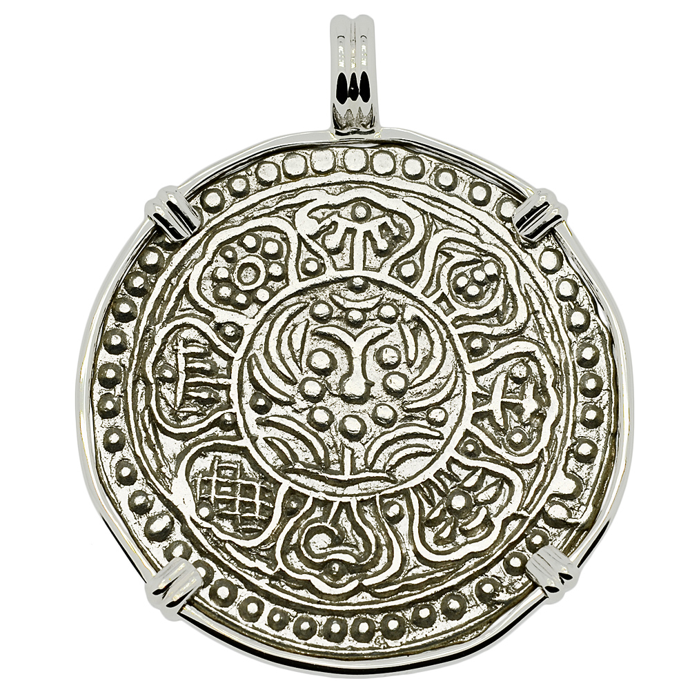 • Silver Coin in 14k White Gold Pendant, Weight 5.8g
