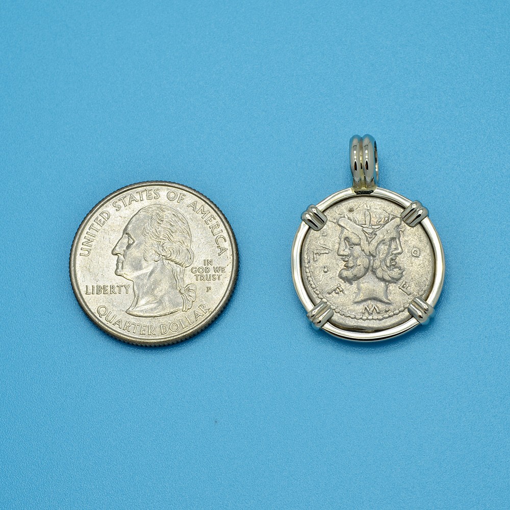• Silver Denarius Coin in 14k White Gold Pendant, Weight 6.9g