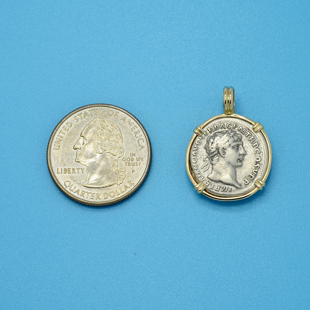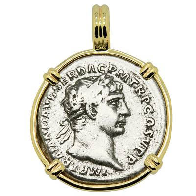 This denarius coin was minted in Rome during the reign of Trajan, who was Roman Emperor from AD 98 to 117 and is remembered as one of Rome's greatest rulers. His building program reshaped the city of Rome with enduring landmarks such as Trajan's Forum, Trajan's Market, Trajan's Column and Trajan's Bridge. The military campaigns of Trajan expanded the Roman Empire to its greatest territorial extent. Early in his reign, he had annexed the Nabataean Kingdom, creating the province of Arabia Petraea. The conquest of Dacia (Greek Thrace), enriched the Empire with its many gold mines. His war against the Parthian Empire ended with the annexation of Armenia and Mesopotamia.