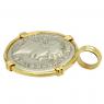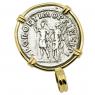 On the reverse side of this coin, Trajan is shown standing while he is holding a spear and parazonium dagger. Winged Victoria is to the right, holding a palm frond while she is crowning Trajan with a wreath. Victoria was a symbol of victory over death and determined who would be successful during war.