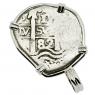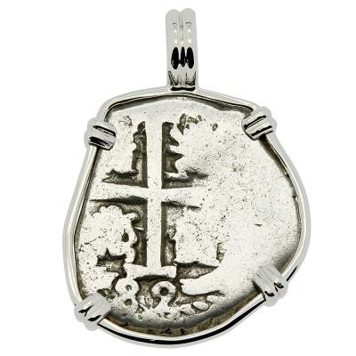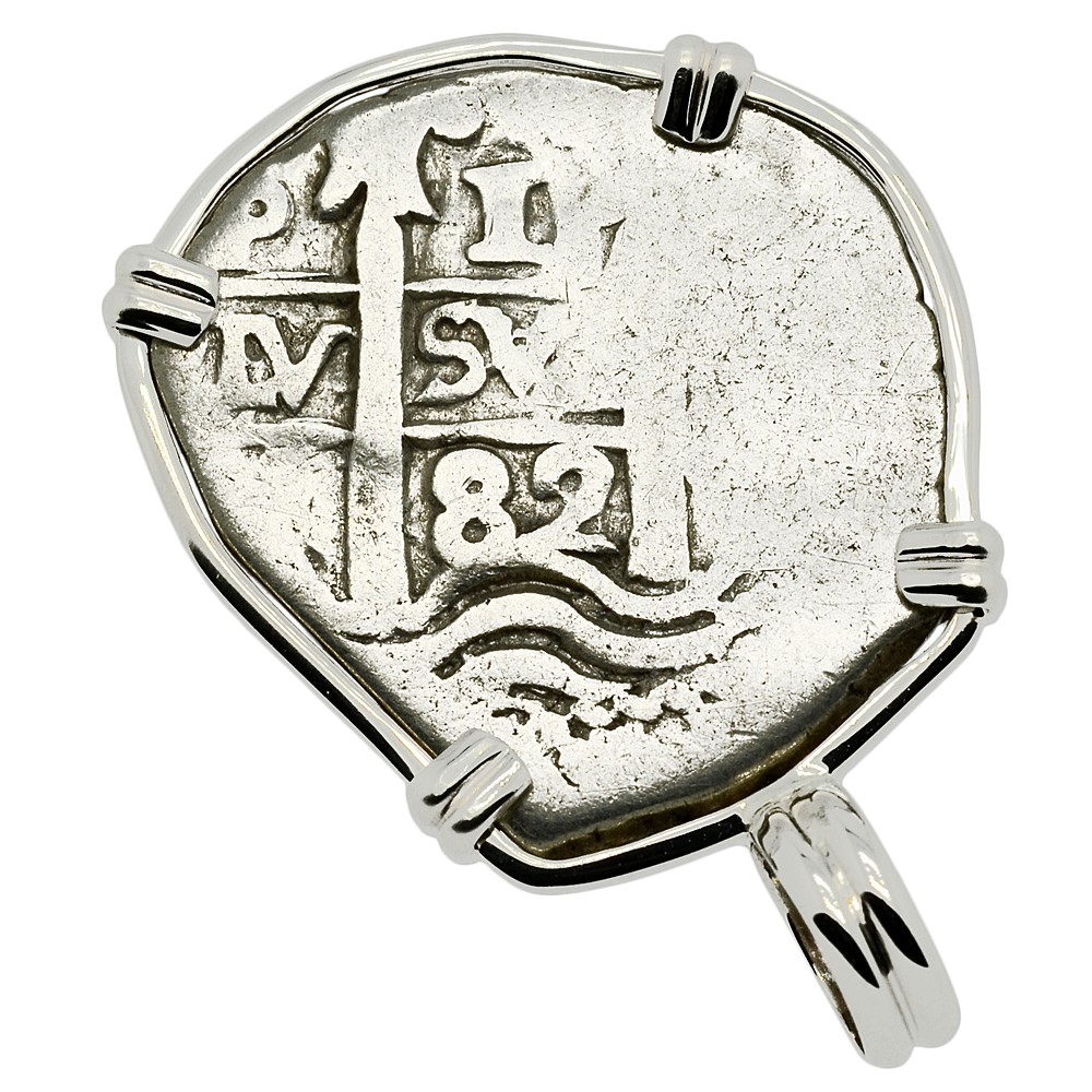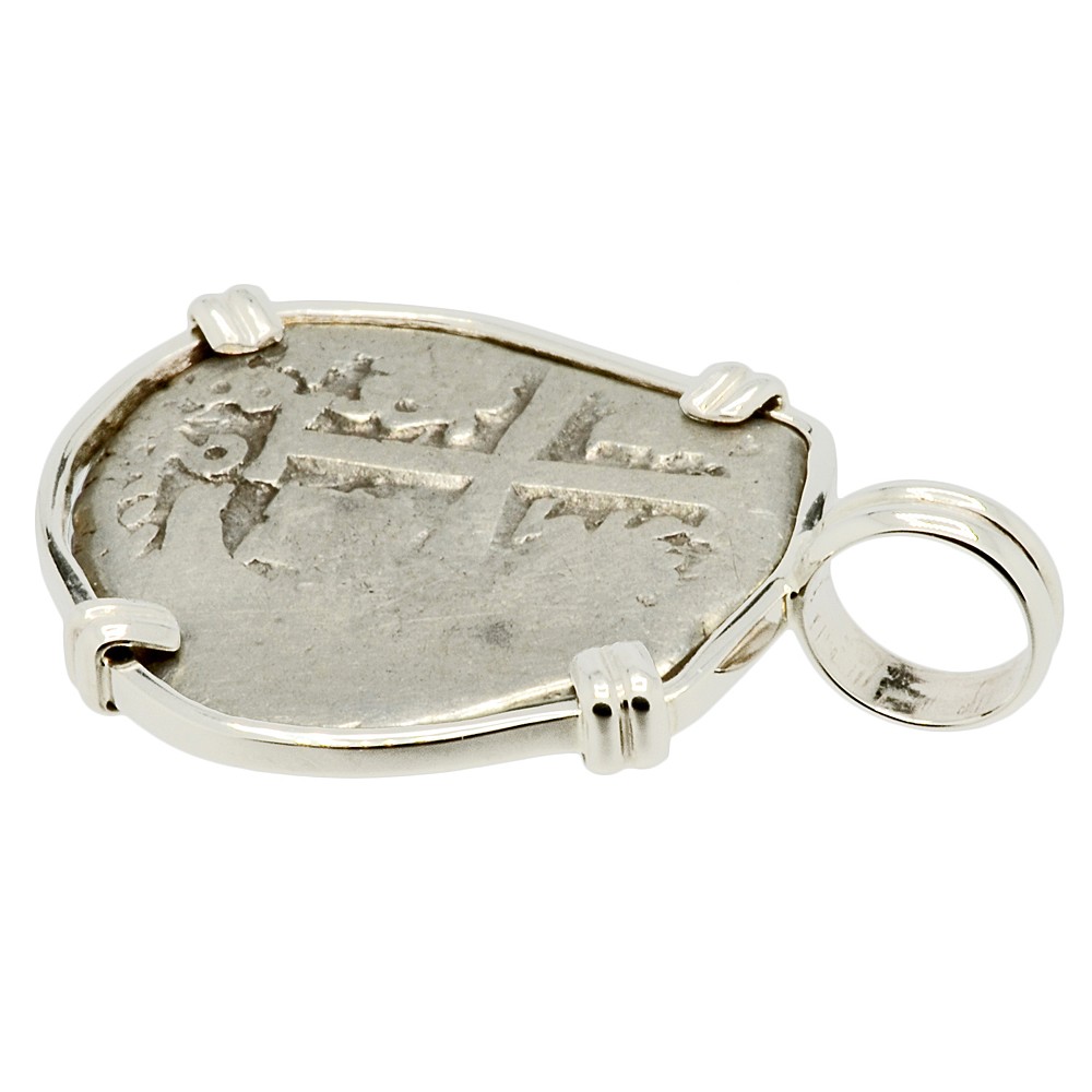This is a genuine Spanish silver coin that was minted in the colonial South American mint of Potosi, Peru. In 1533, four decades after Columbus landed in the New World, Spanish conquistador Francisco Pizarro conquered the Inca Empire in Peru. Soon after, high in the Andes Mountains at Potosi, the Spanish discovered the richest silver deposits in the world and in 1575 they opened the mint in Potosi.