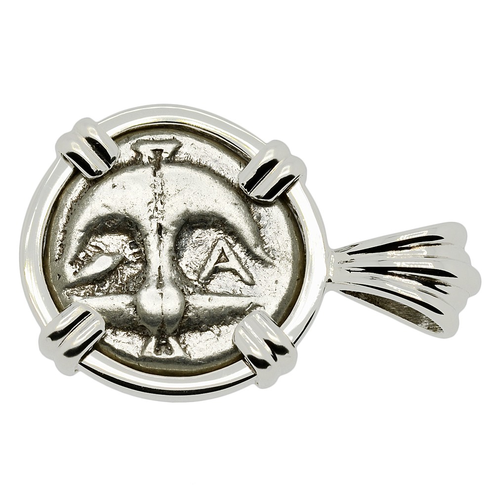 • Silver Drachm Coin in 14k White Gold Pendant, Weight 6.3g