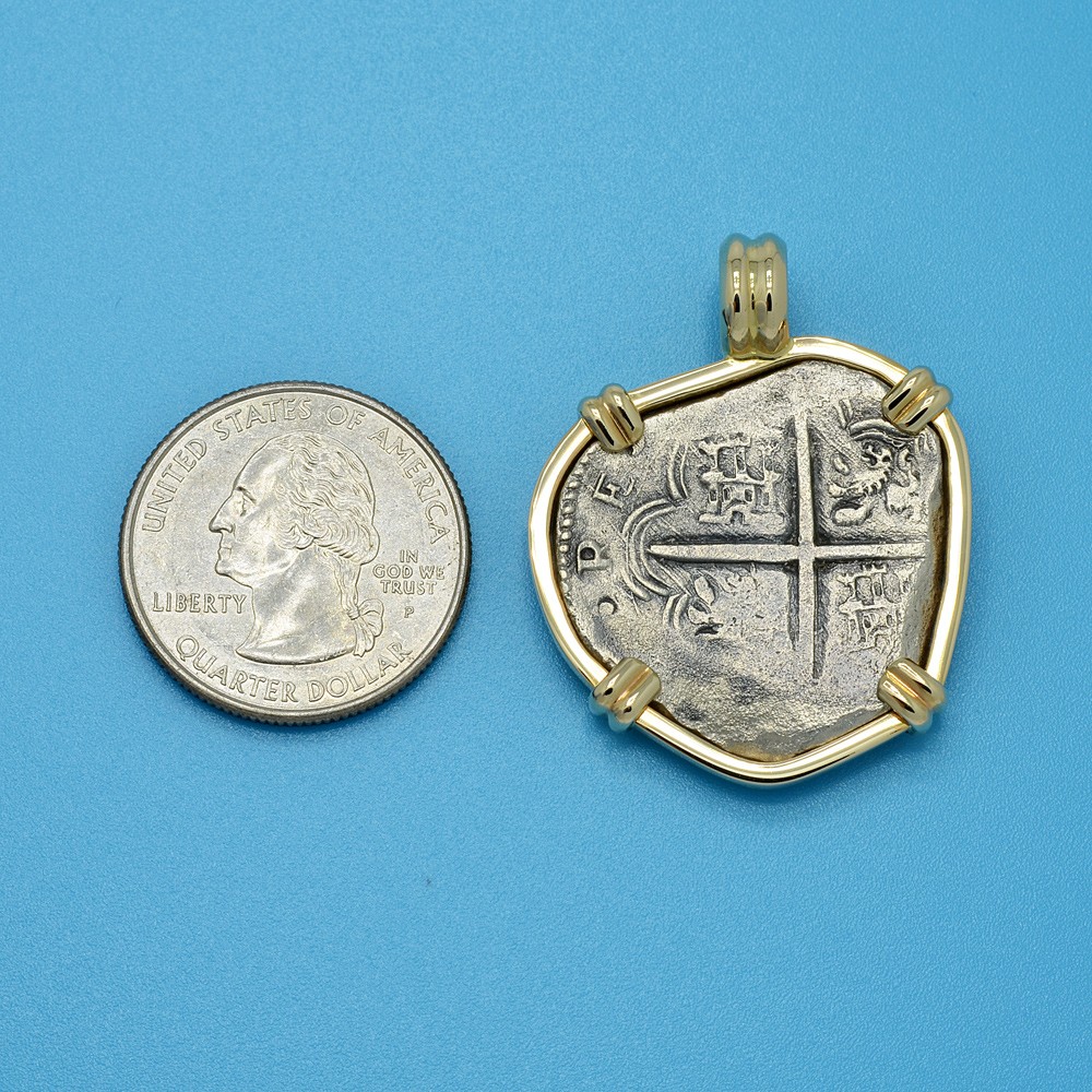 Arqueonautas salvagers certificate included. This is a genuine Spanish silver coin recovered from the shipwreck site of the São José, which sank in 1622. The São José (pronounced: Sow zho-ZAY) was a Portuguese “carrack”, an immense ship with a huge stern castle that towered high above the sea. Following reports that the British planned on capturing their strategic island outpost Hormuz along the spice route, a fleet was hastily prepared for an urgent mission. Armed with brass cannon, the São José set sail in March 1622 from Lisbon with many passengers and the royal treasure of Philip III, which included 9 chests filled with thousands of silver reales. After entering the Strait of Madagascar, the São José lagging behind the fleet, was attacked by a combined force of Dutch and British East India Company ships.