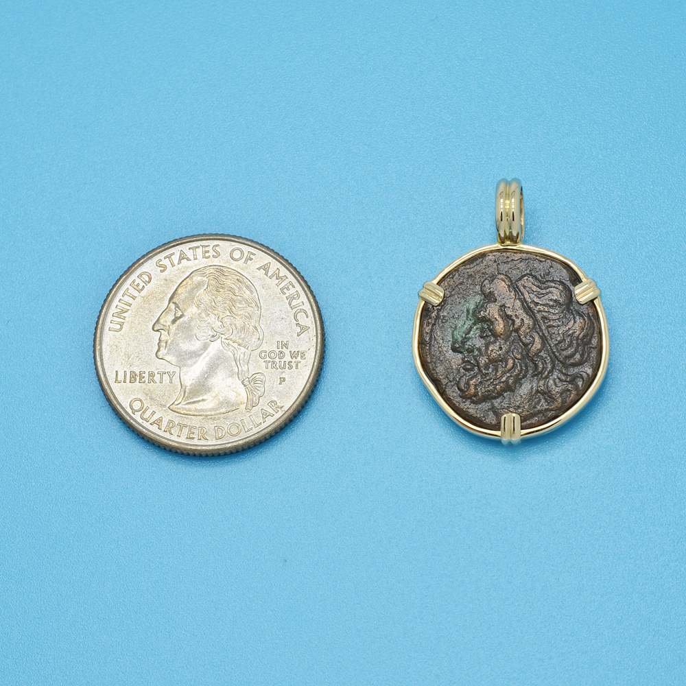 This ancient coin was minted in the historic Greek city of Syracuse under the rule of King Hieron II and during the lifetime of the most famous Syracusan, the mathematician and natural philosopher Archimedes. Syracuse was founded along the southeast coast of Sicily in 734 BC by Greek settlers from Corinth and the city soon flourished.