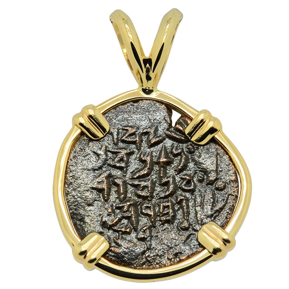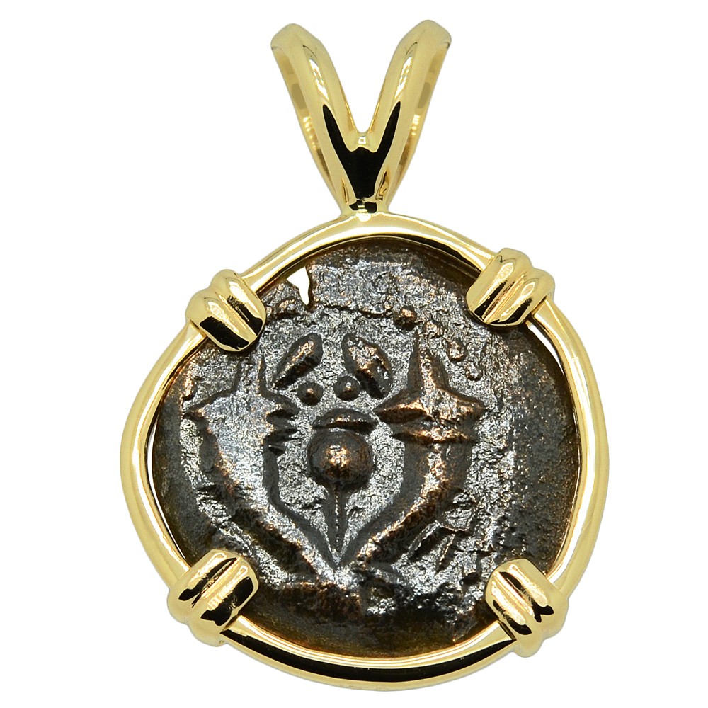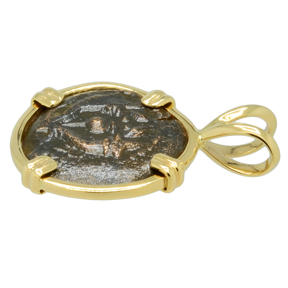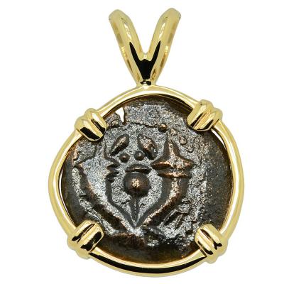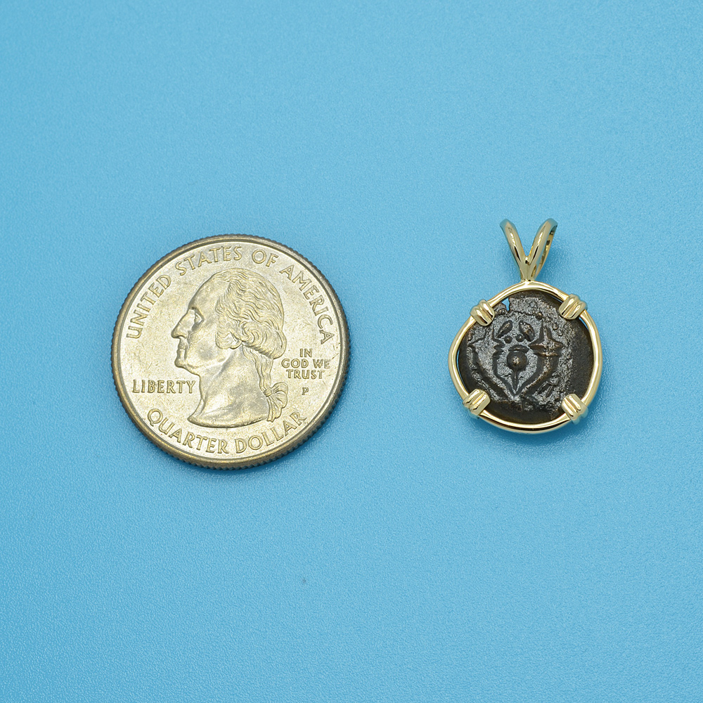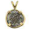 • Bronze Prutah Coin in 14k Gold Pendant, Weight 2.3g