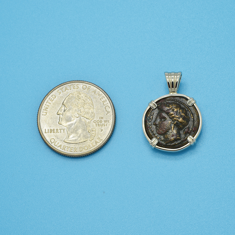 This coin was minted in the historic Greek city of Syracuse during the rule of Agathocles, who from 317 - 289 BC was the Greek tyrant of Syracuse and King of Sicily. With his army of mercenaries, Agathocles seized power in 317 BC and much of his rule was consumed with war against Carthage. Syracuse was founded along the southeast coast of Sicily in 734 BC by Greek settlers from Corinth and the city soon flourished. Over the centuries, Syracuse became one of the most renowned capitals of antiquity. This powerful city-state was well known for its rich Greek culture, amphitheatres and beautiful architecture. The most famous Syracusan was the mathematician and natural philosopher Archimedes, who was born here in 287 BC.