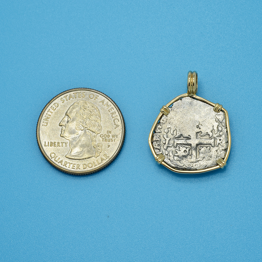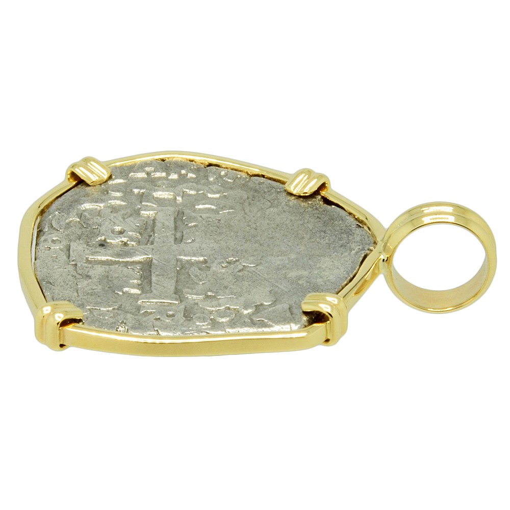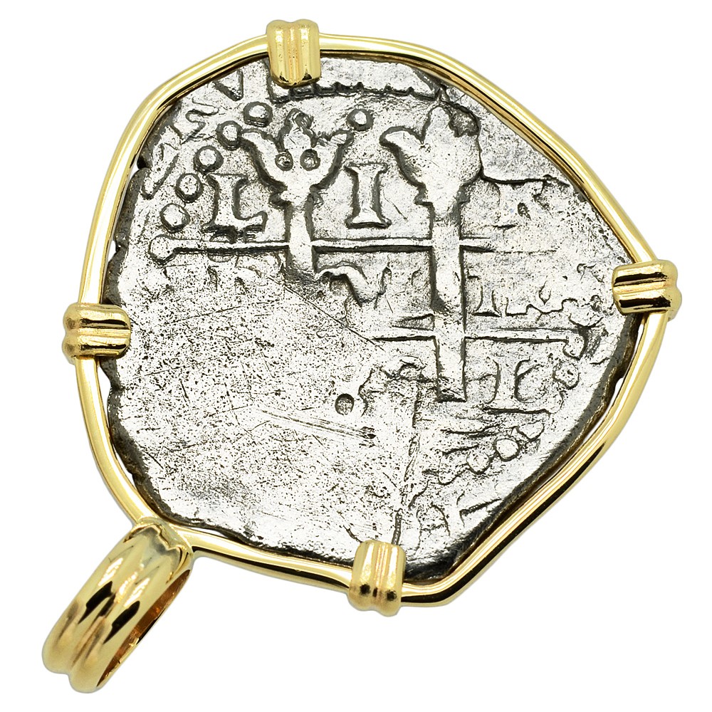 This is a genuine Spanish silver coin that was minted in the colonial South American mint of Lima, Peru. In 1533, Spanish conquistador Francisco Pizarro conquered the Inca Empire in Peru and two years later, he established the coastal city of Lima. Soon after, high in the Andes Mountains at Potosi, the Spanish discovered the richest silver deposits in the world and in 1568 they opened the mint in Lima.