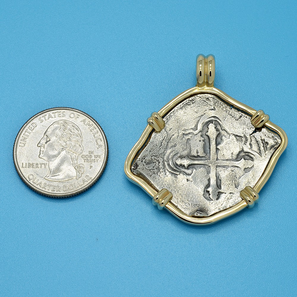 Salvagers certificate included. This is a genuine silver coin salvaged from the treasure ship Nuestra Señora de la Concepción. On September 28, 1641, the Concepción, along with a fleet of 20 other ships, set sail from Veracruz, Mexico to Cadiz, Spain. The fleet soon encountered severe storms and was scattered, while the Concepción was badly damaged. On November 2, 1641, the hull of the Concepción ran aground amidst the reefs now known as “Silver Shoals”, north of Hispañola, the present-day Dominican Republic. Between the storm and the wreck itself leading to starvation, exposure, drowning, and sharks, over three hundred of the five hundred passengers and crew aboard the Concepción perished.