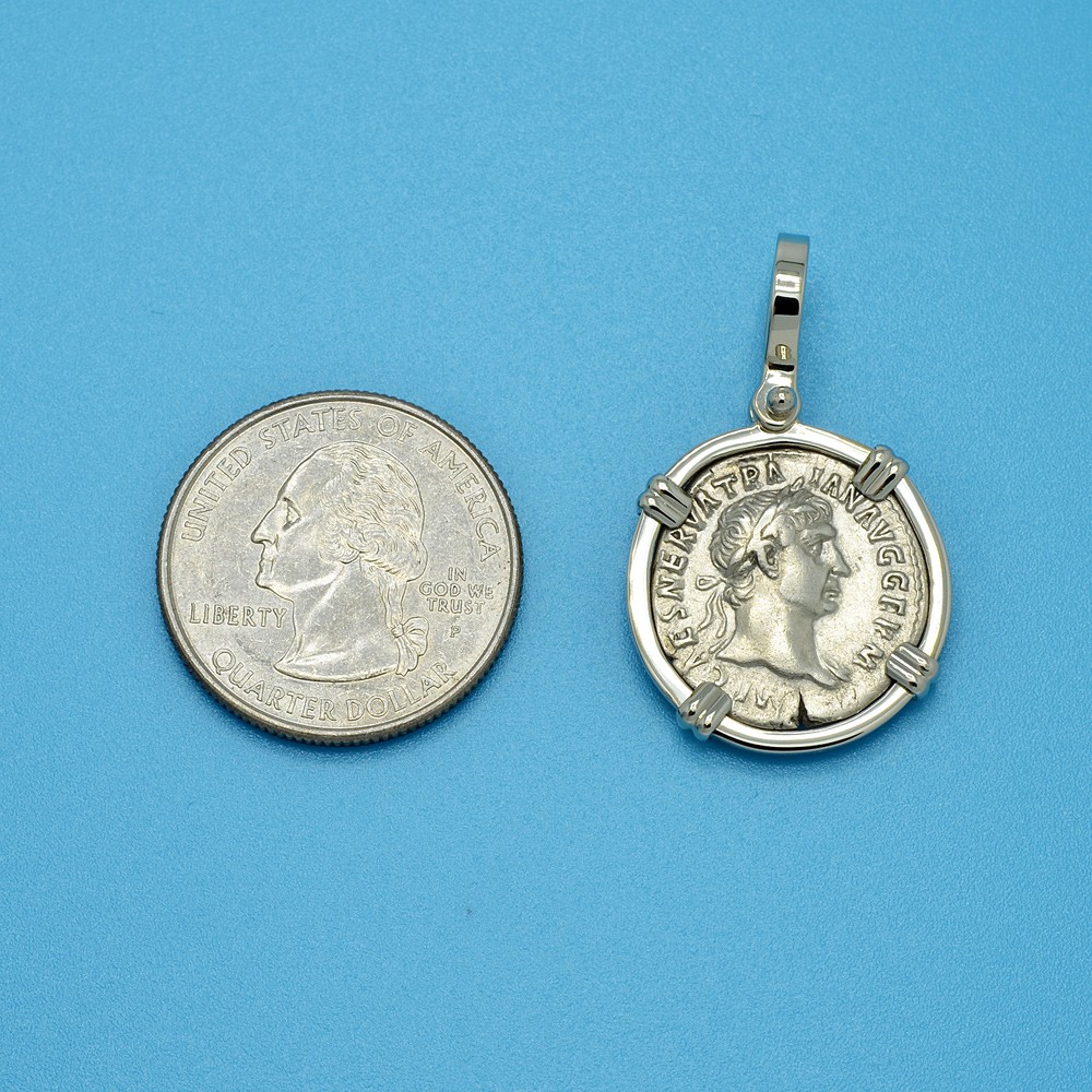 • Silver Denarius Coin in 14k White Gold Pendant, Weight 6.7g