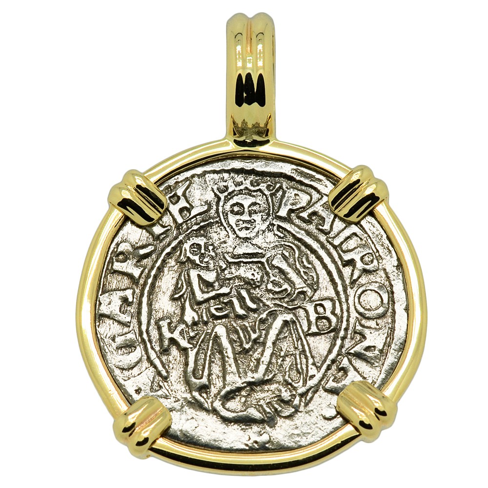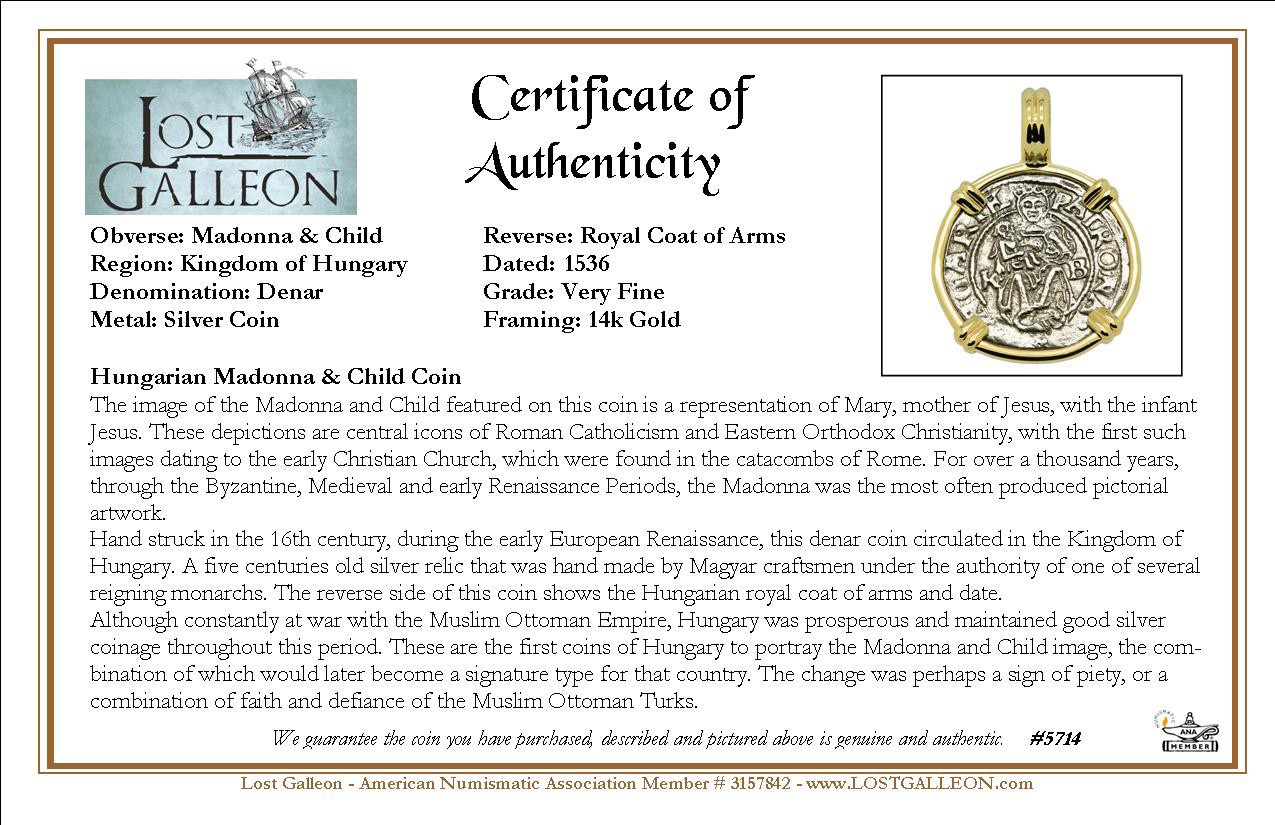 Hand struck in the 16th century, during the early European Renaissance, this denar coin circulated in the Kingdom of Hungary. A five centuries old silver relic that was hand made by Magyar craftsmen under the authority of one of several reigning monarchs. The reverse side of this coin shows the Hungarian royal coat of arms and date.