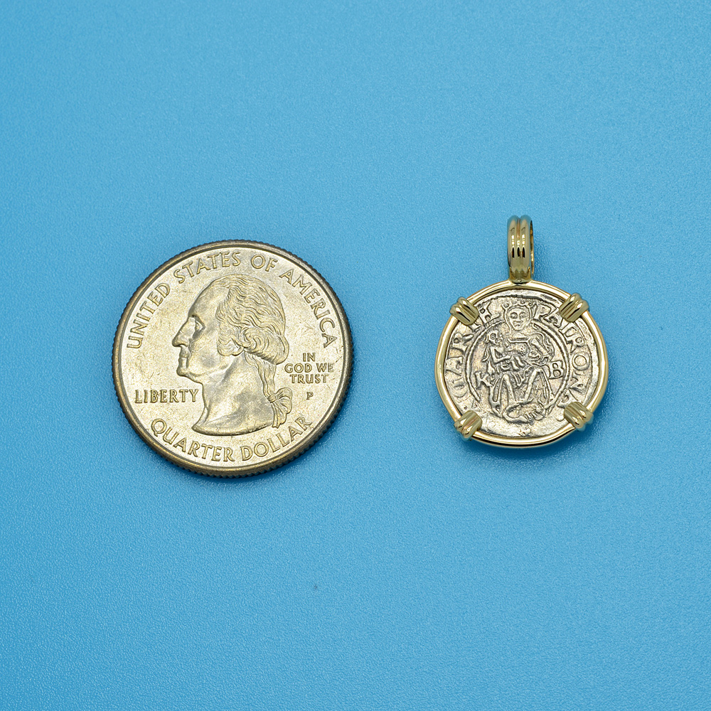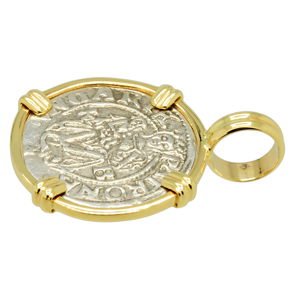 • Silver Denar Coin in 14k Gold Pendant, Weight 1.8g