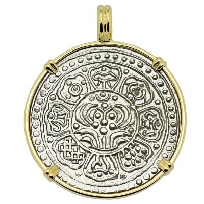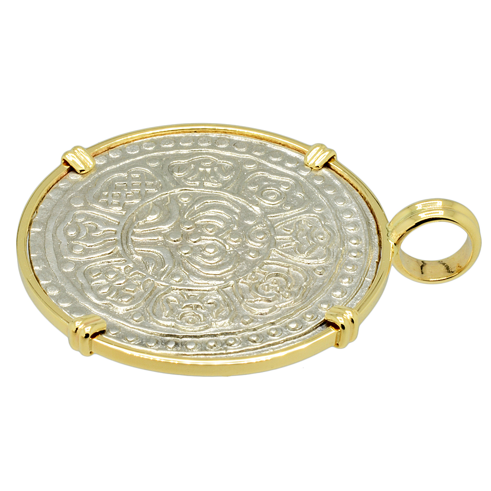 • Silver Coin in 14k Gold Pendant, Weight 7g