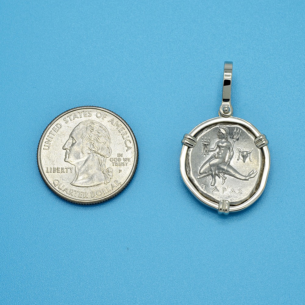 Most Greek cities had foundation mythologies, which tell of the circumstances under which a city was founded. One of the most interesting of all is that of the South Italian city of Taras. It was originally populated around the 8th century BC by people from the Greek city-state of Sparta, but in Greek mythology it was founded with the help of the gods. During the 5th and 4th centuries BC, Taras became the most important Greek city in Southern Italy, ruling over other Greek colonies here. However, in 272 BC Taras finally surrendered to the Romans who were expanding throughout Italy. The city maintained its Greek culture and continued to mint their coinage for another 60 years.