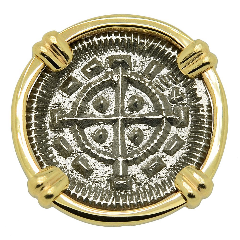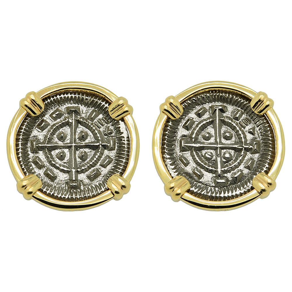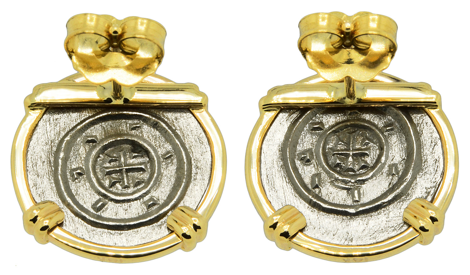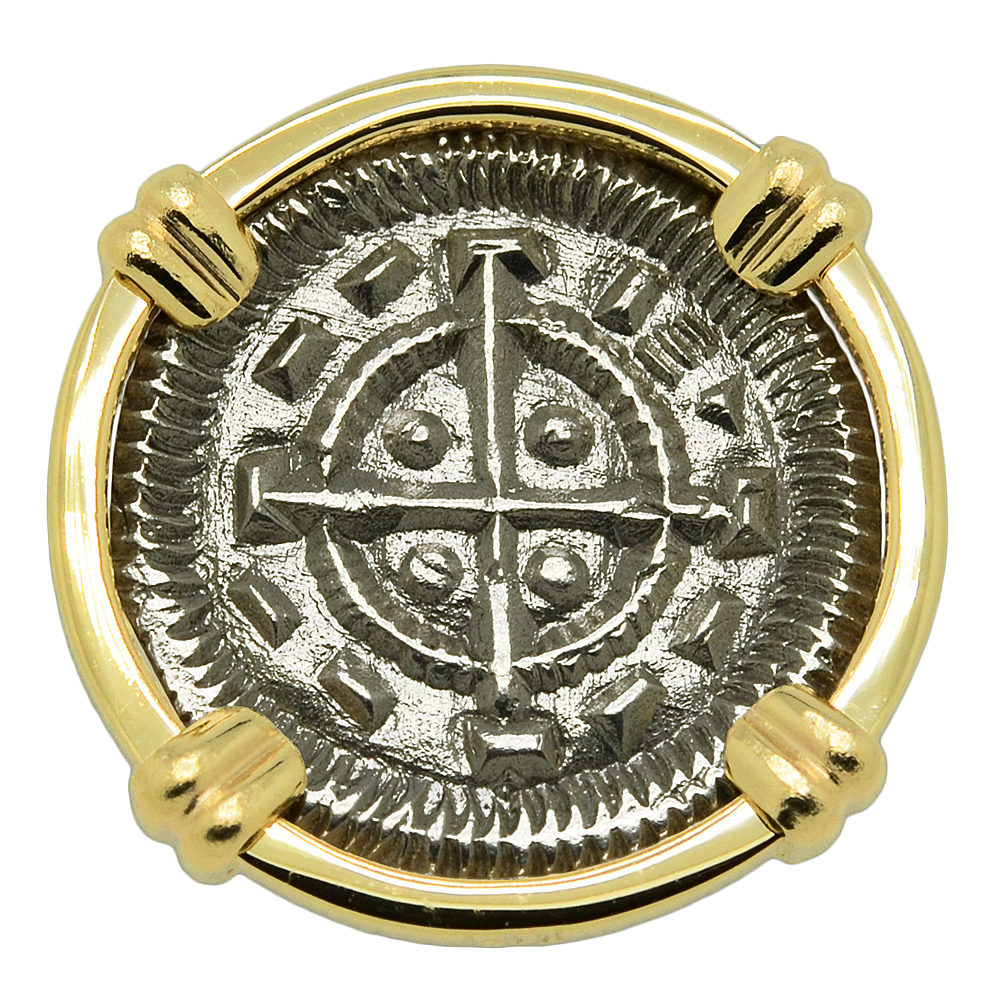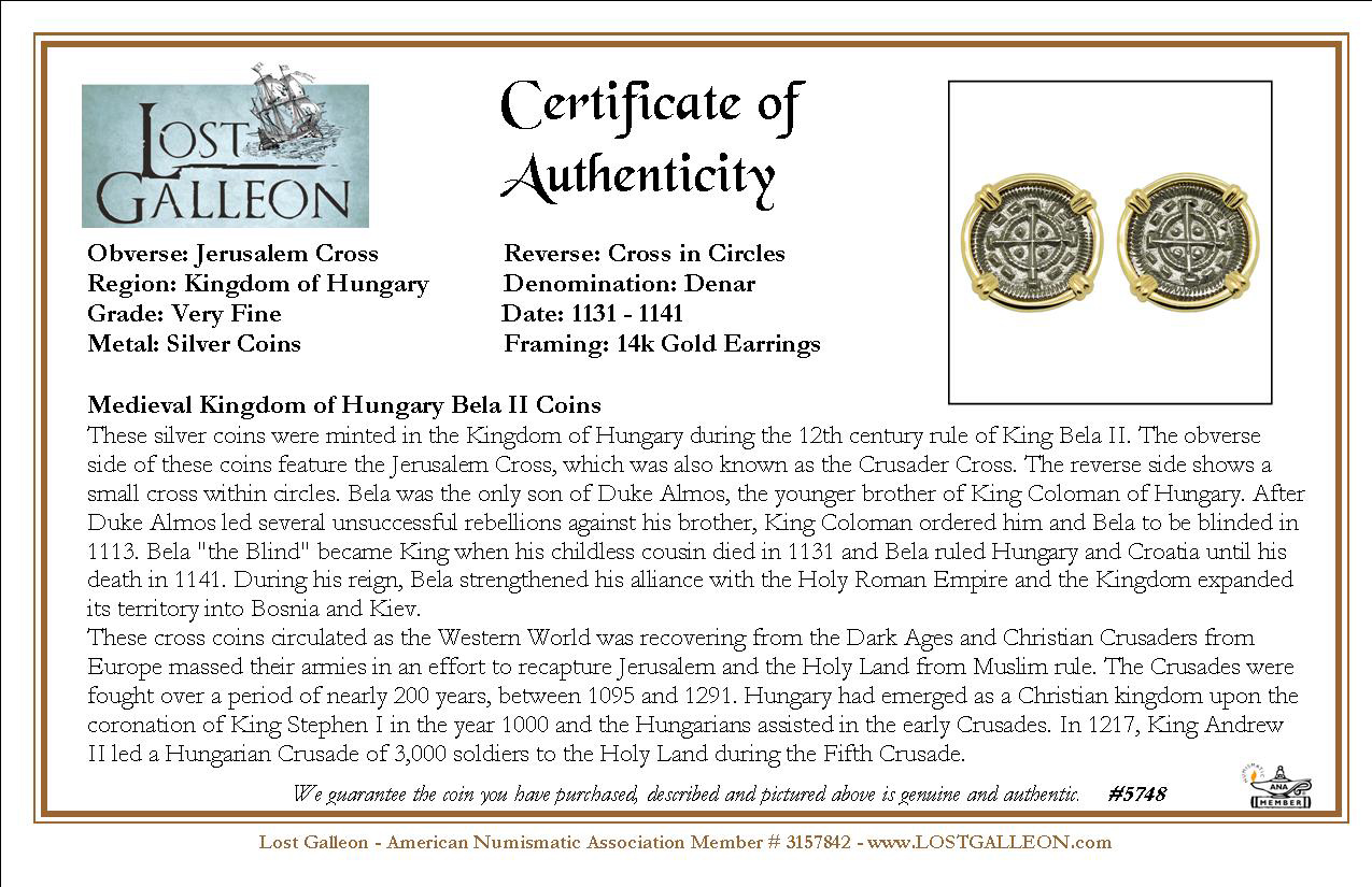 These silver coins were minted in the Kingdom of Hungary during the 12th century rule of King Bela II. The obverse side of these coins feature the Jerusalem Cross, which was also known as the Crusader Cross. The reverse side shows a small cross within circles.