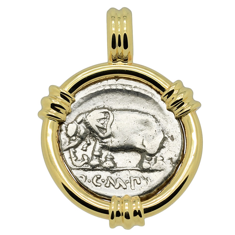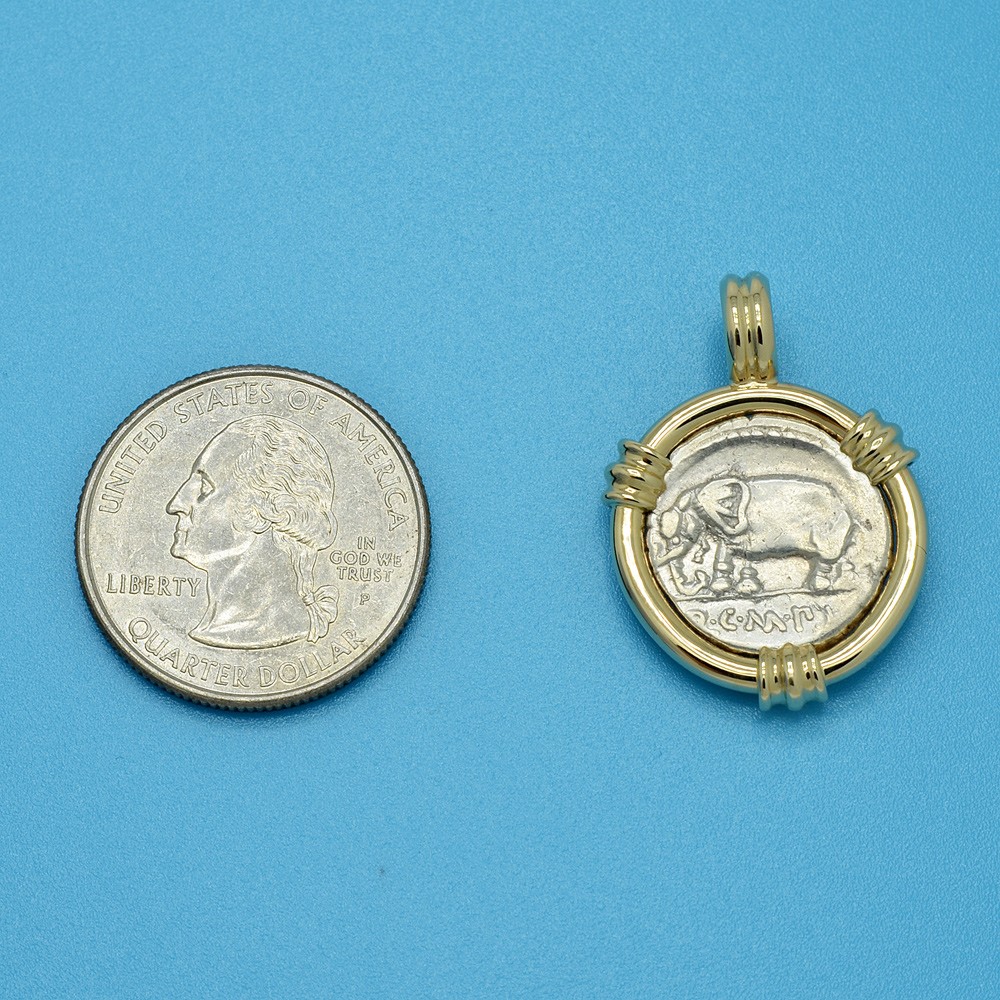 SOLD Elephant and Pietas Denarius Pendant. Please Explore Our Roman Pendants For Similar Items.