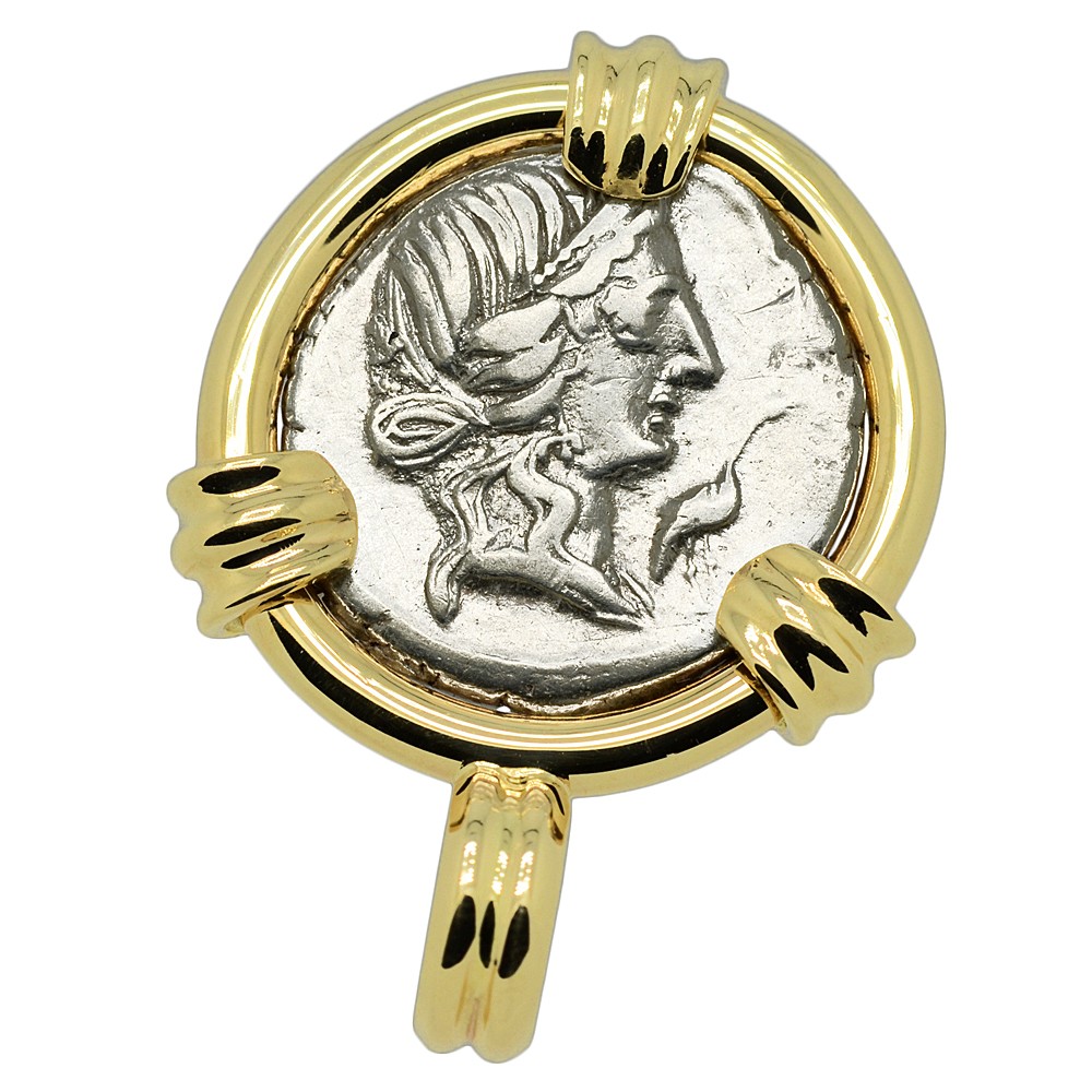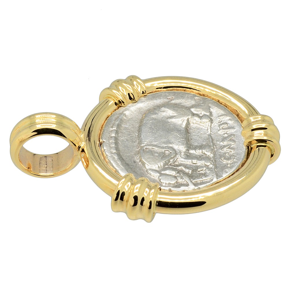 • Silver Denarius Coin in 14k Gold Pendant, Weight 9.1g